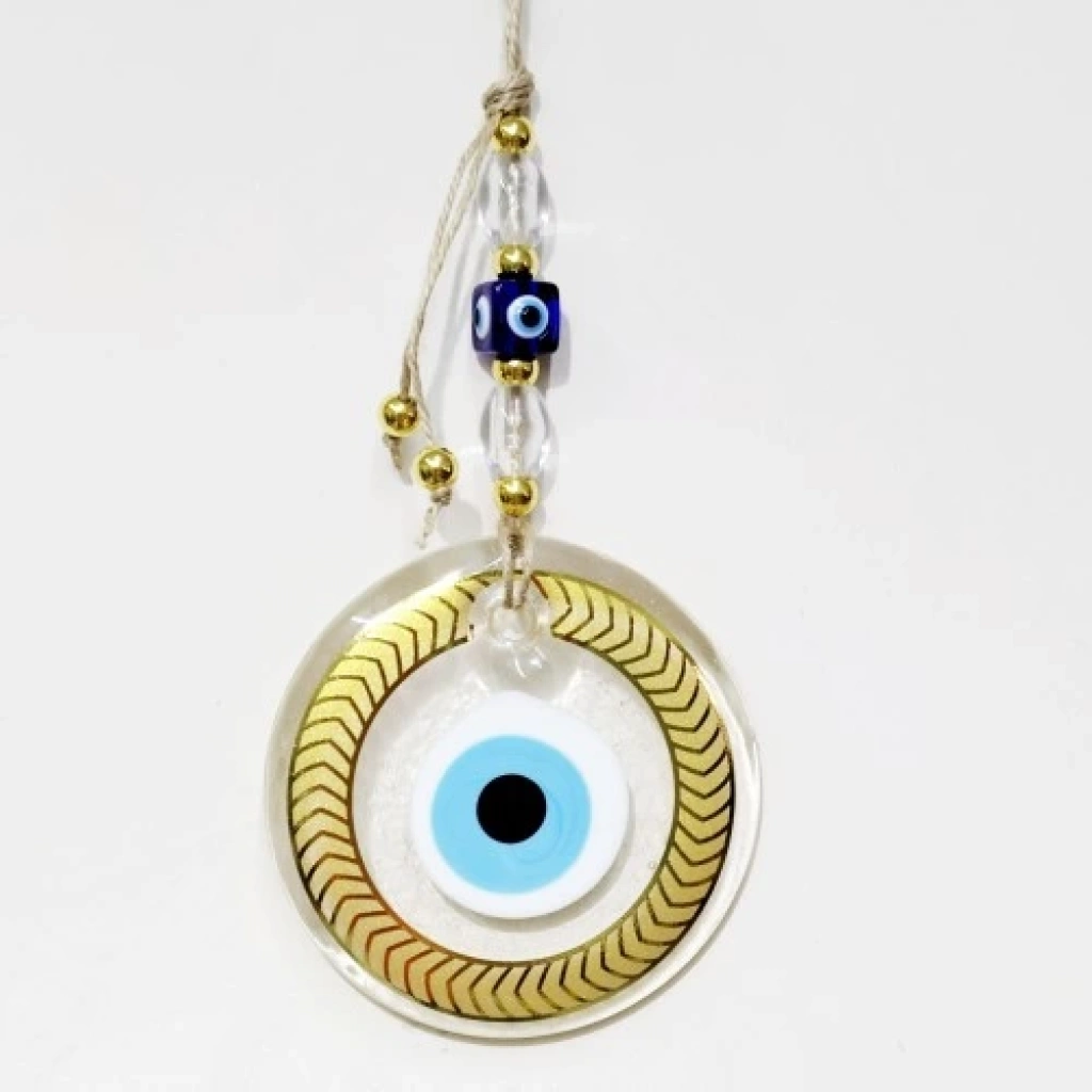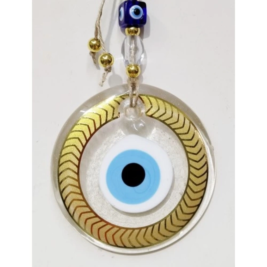Dodes Altın Yaldızlı Nazar Boncuklu Şeffaf Cam Duvar Süsü