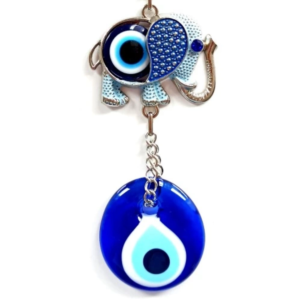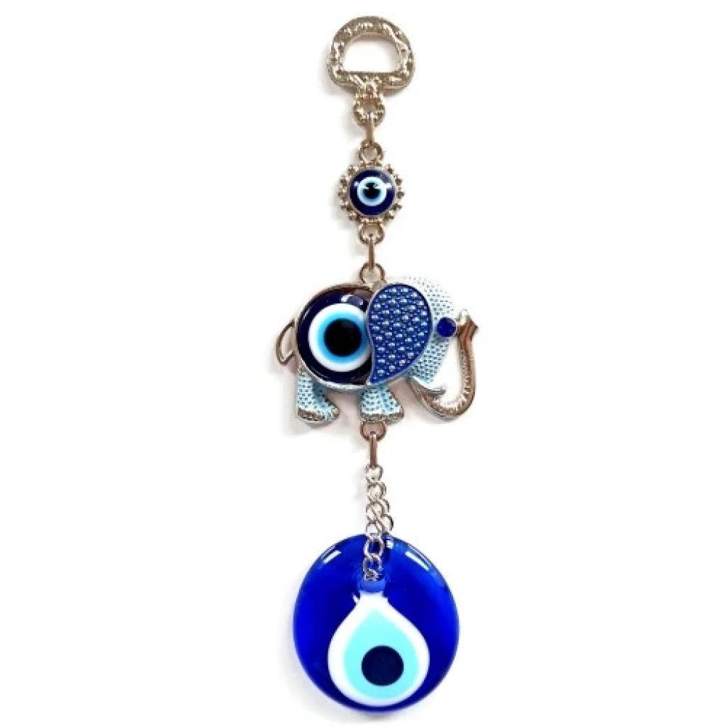 Cam nazar boncuklu fil figürlü duvar süsümüz 4 x 15 santimetre ölçülerindedir.