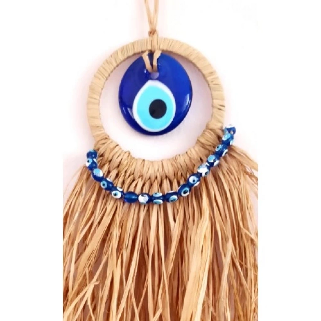 Rafyalı mini duvar süsümüzün nazar boncuğu 5 santimetredir. Ürünümüz üzerindeki yuvarlak kısım 10 santimetre çapında olup ürünümüz ip dahil yaklaşık 45 santimetre boyundadır. Ürünümüz el yapımıdır.Nazar boncuğunun koruyucu özelliğiyle birleşen rafya ve camın sıcaklığı, bu duvar süsünü benzersiz kılıyor. Hem modern hem de geleneksel dekorasyonlara uyum sağlayan bu ürün, evinizin her köşesini güzelleştirecek.