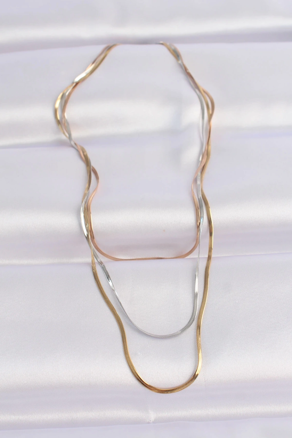 Dodes Dodes 316L Çelik 3 Renkli İtalyan Zincir Çoklu Kolye TG27BKO8641