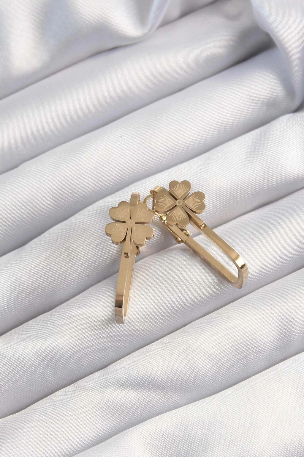 Dodes Dodes 316L Çelik Altın Renk Geometrik Yonca Model Küpe TG27BKP9495