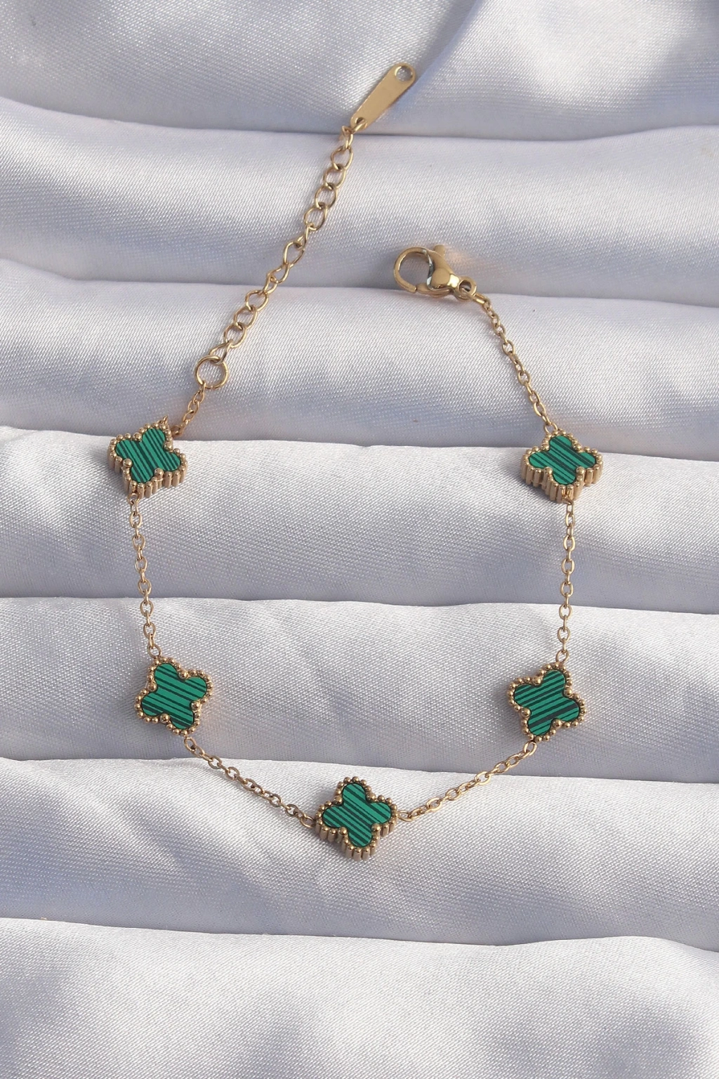 Dodes Dodes 316L Çelik Baby Boy Gold Renk Çizgili Yeşil Mineli Yonca Bileklik TG27BB6271