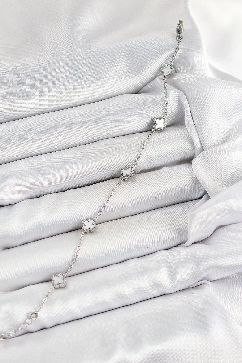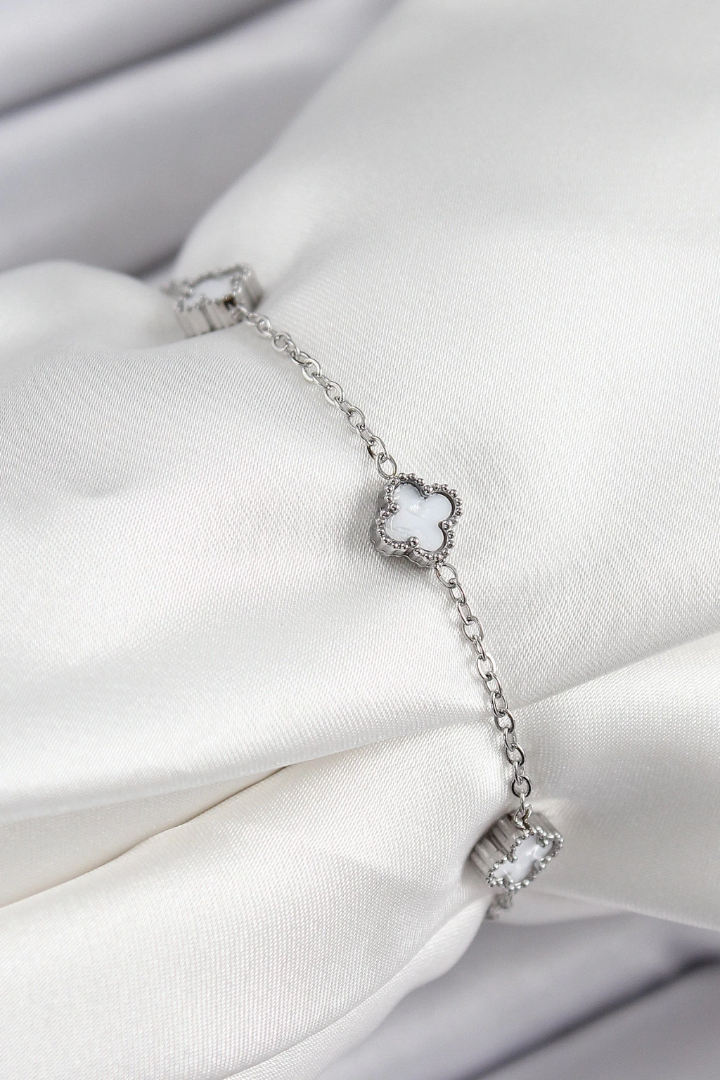 Dodes Dodes 316L Çelik Beyaz Sedef Yonca Model Gümüş Renk Kadın Bileklik TG27BB7361