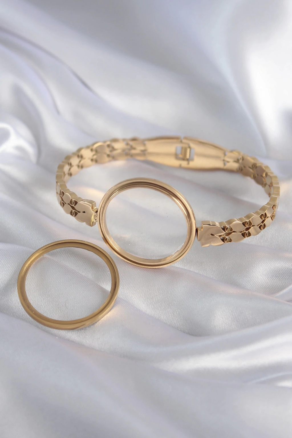 Dodes Dodes 316L Çelik Gold Renk Arpa İşleme Açılabilir Fanus Model Kadın Kelepçe TG27BB5911