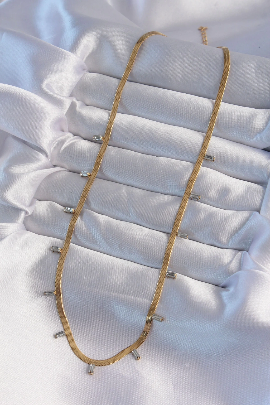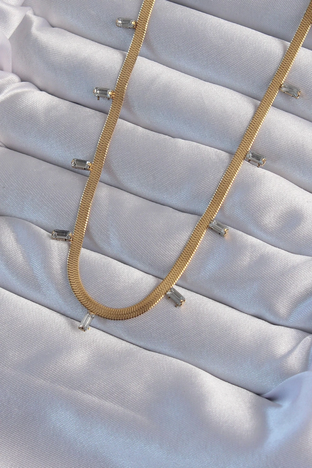 Dodes Dodes 316L Çelik Gold Renk Baget Taşlı İtalyan Zincir Kolye TG27BKO8994
