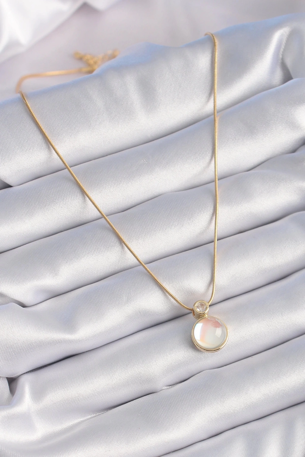 Dodes Dodes 316L Çelik Gold Renk Beyaz Sedefli Vintage Kadın Kolye TG27BKO9328