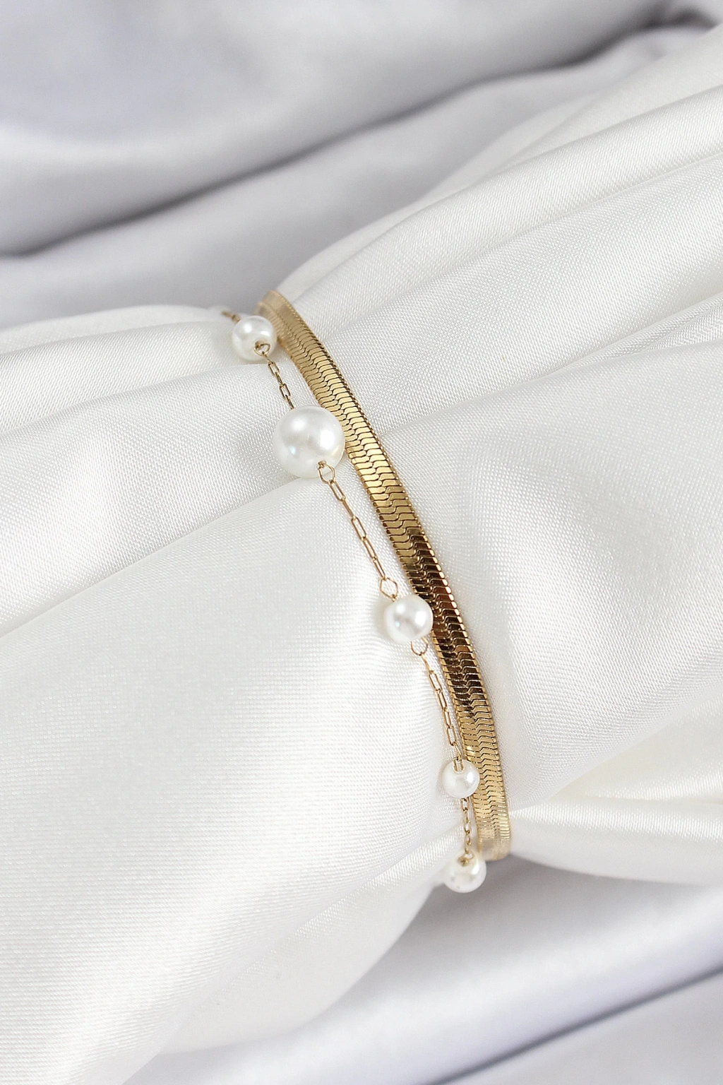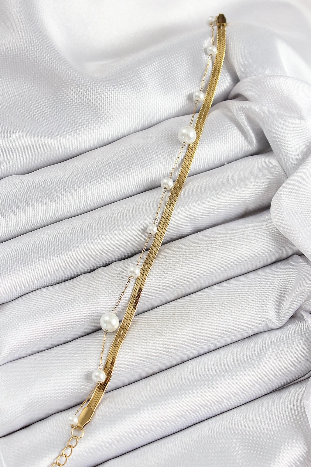 Dodes Dodes 316L Çelik Gold Renk İncili ve İtalyan Zincirli Kadın Bileklik TG27BB7094