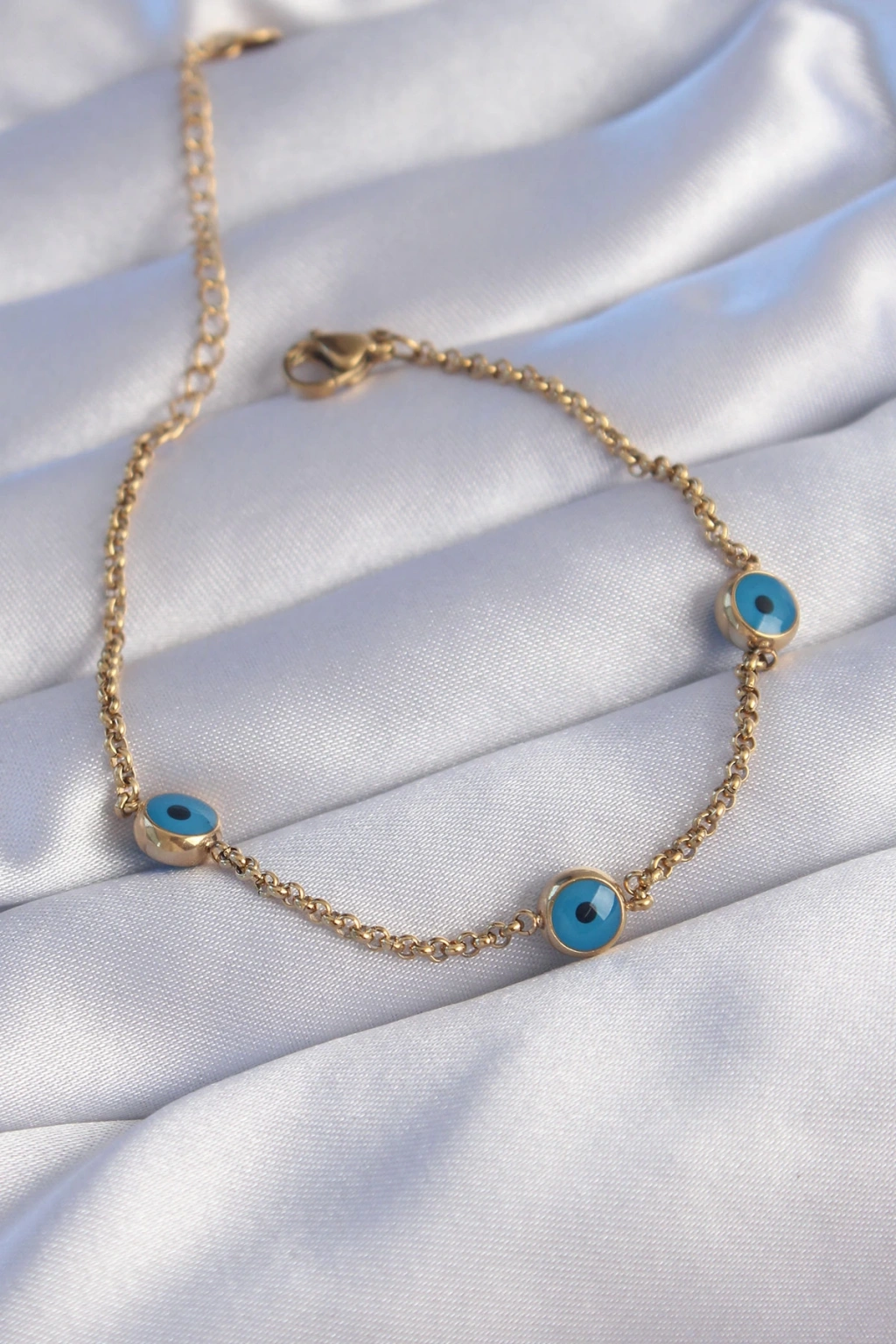 Dodes Dodes 316L Çelik Gold Renk Nazar Boncuk Tasarımlı Bileklik TG27BB6100