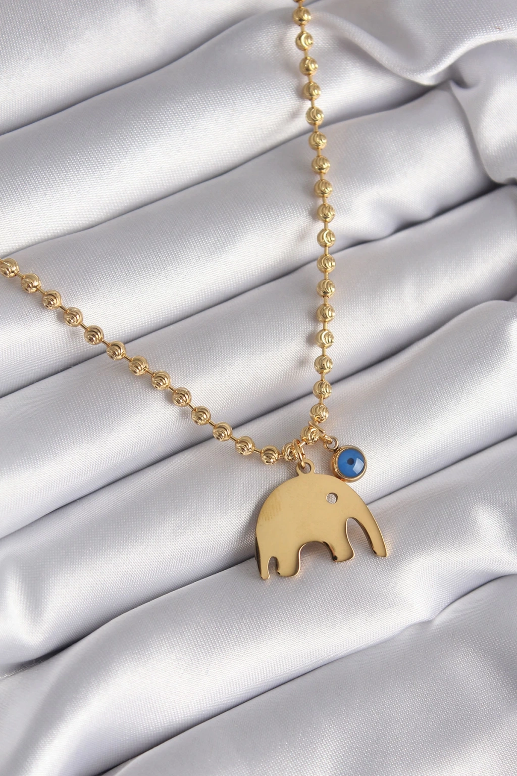 Dodes Dodes 316L Çelik Gold Renk Top Zincir Model Fil Figür Nazar Boncuk Detay Kadın Kolye TG27BKO8342