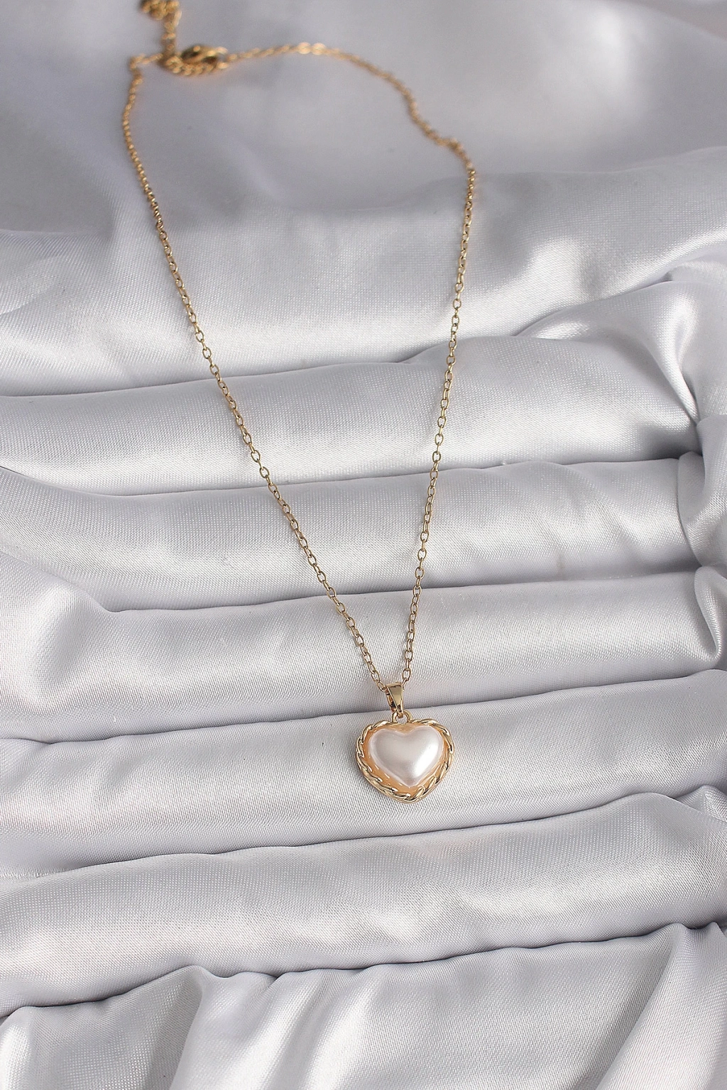 Dodes Dodes 316L Çelik Gold Renk Zincir 3D İnci Kalp Model Kadın Kolye TG27BKO9713