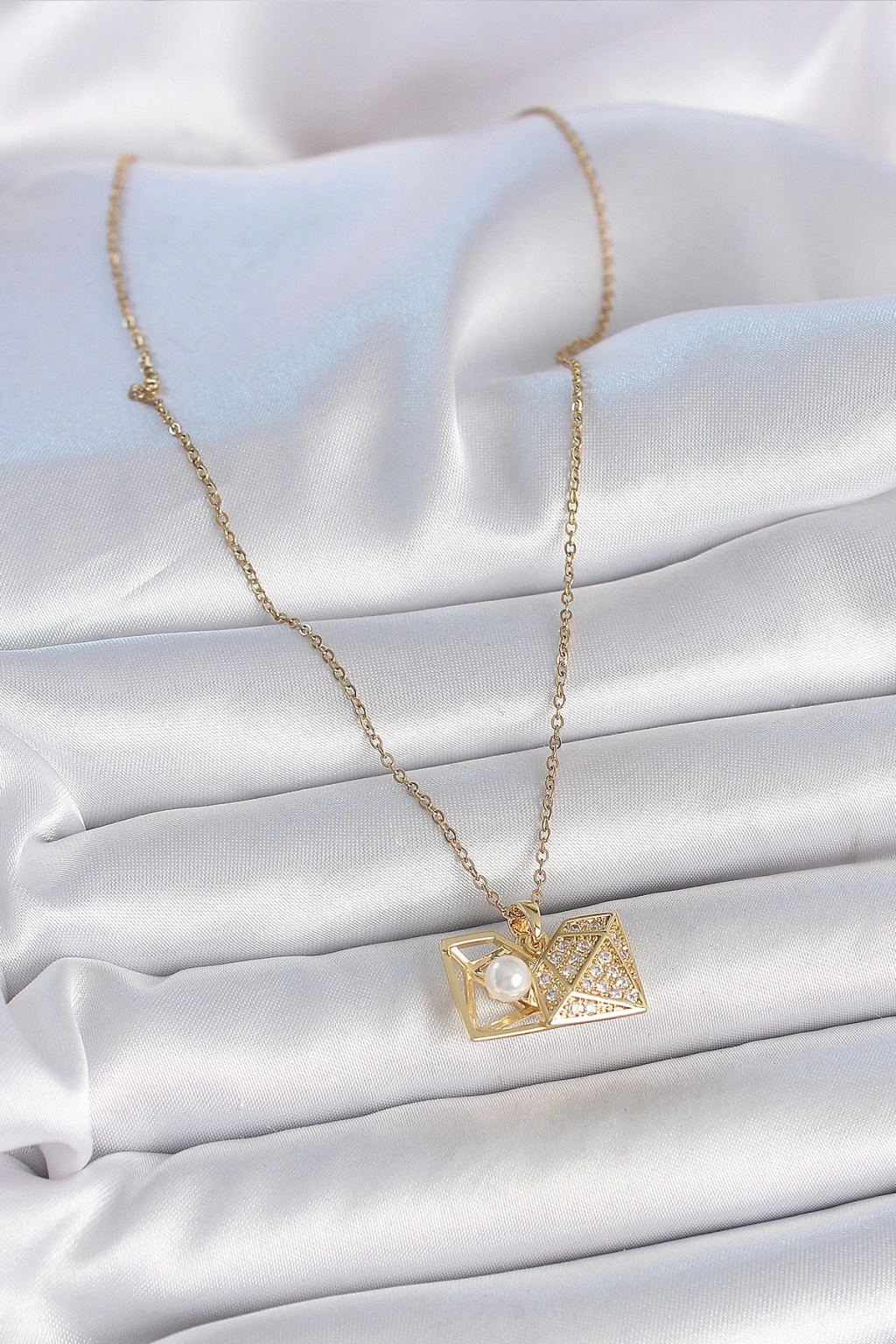 Dodes Dodes 316L Çelik Gold Renk Zincir Zirkon Taşlı Açılır İncili Elmas Model Kadın Kolye TG27BKO10049
