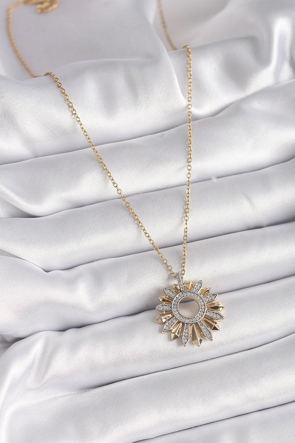 Dodes Dodes 316L Çelik Gold Renk Zincir Zirkon Taşlı Mix Renk Güneş Model Kadın Kolye TG27BKO9477