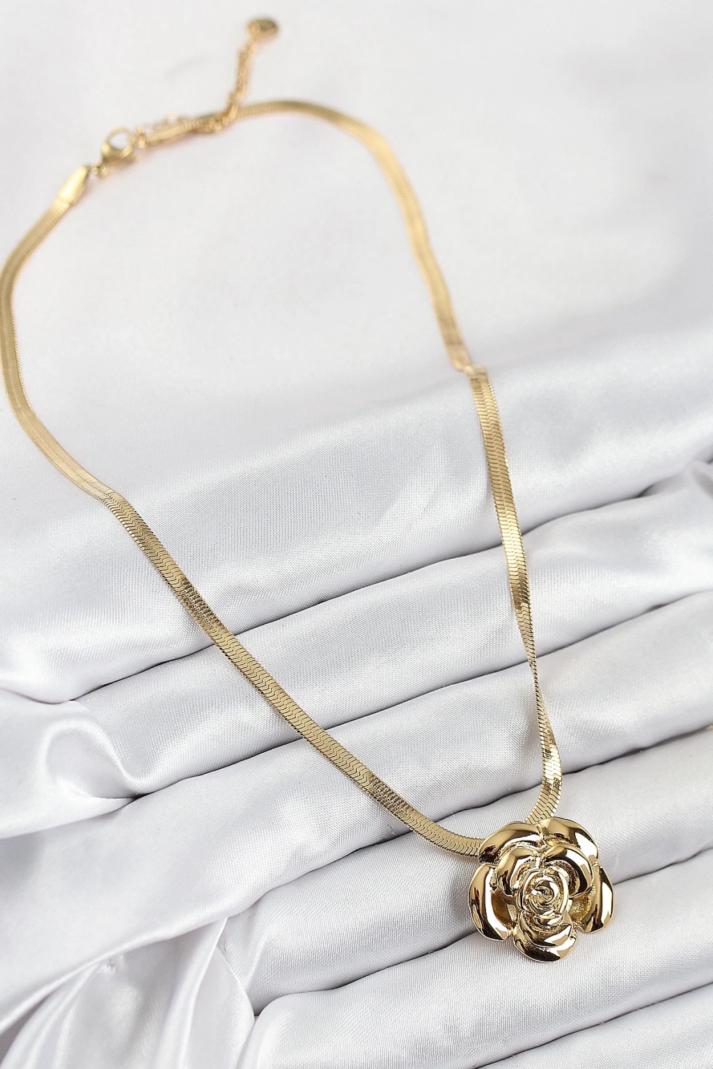 Dodes Dodes 316L Çelik Gül Figürlü İtalyan Zincir Model Gold Renk Kadın Kolye TG27BKO10513