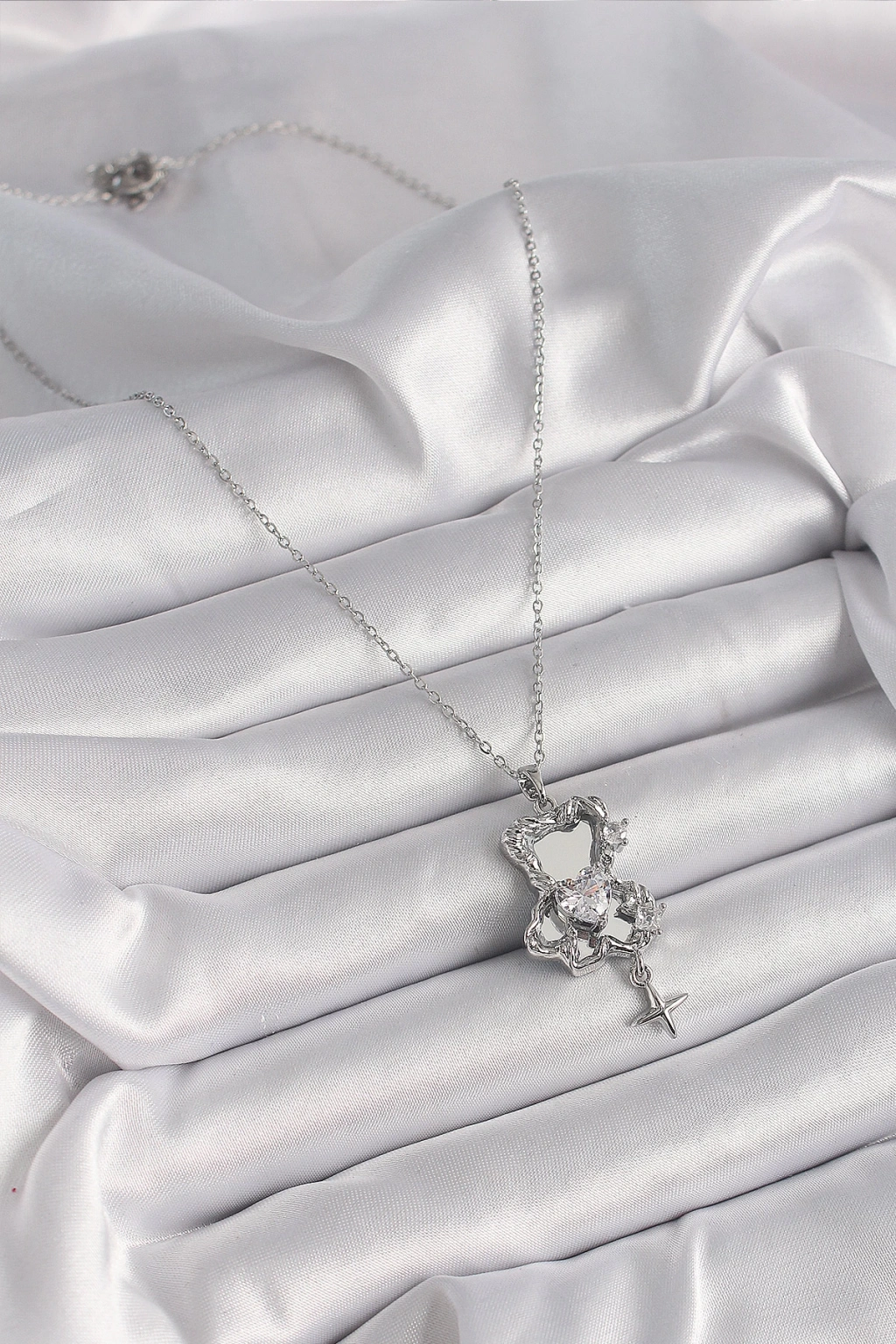 Dodes Dodes 316L Çelik Gümüş Renk Ayna Ayıcık Model Zirkon Taşlı Kalp Detay Kadın Kolye TG27BKO9627