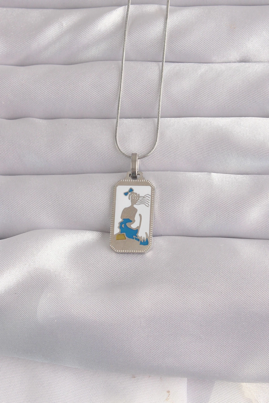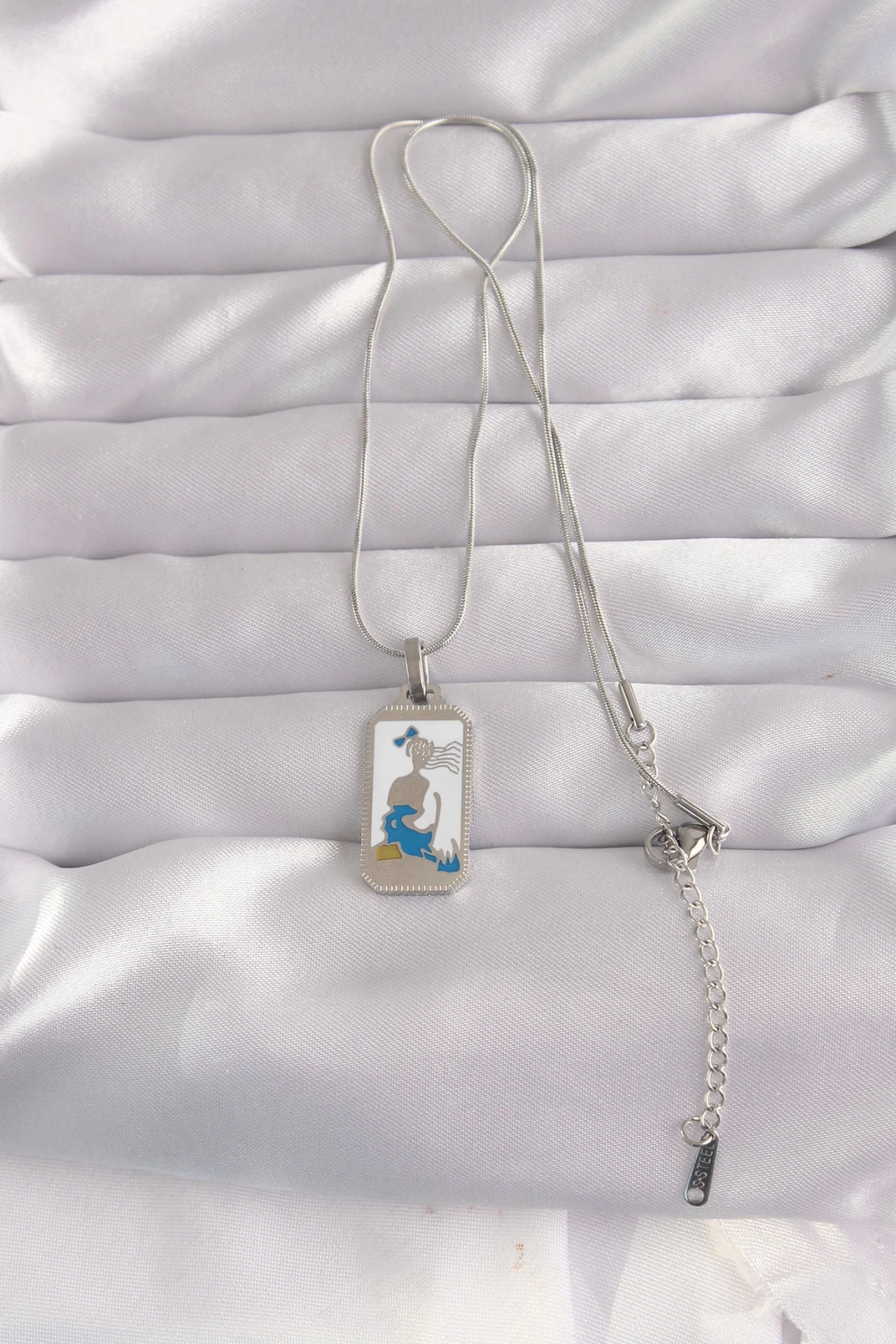 Dodes Dodes 316L Çelik Gümüş Renk Beyaz Mineli Kız Figür Tarot Kolye TG27BKO9049