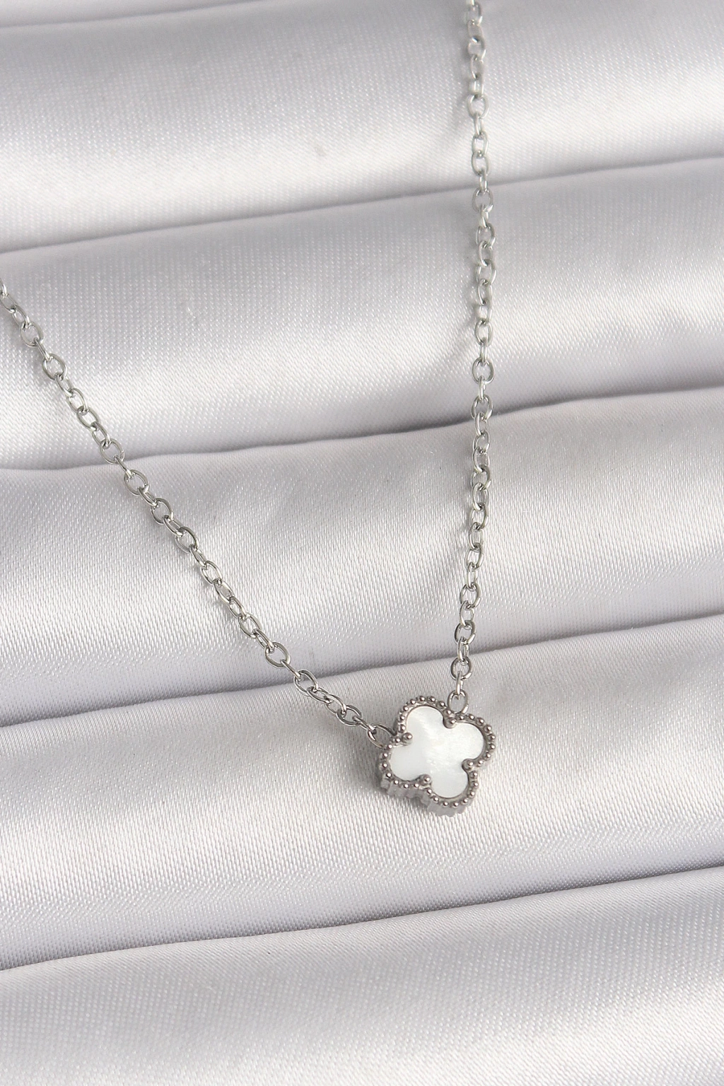 Dodes Dodes 316L Çelik Gümüş Renk Beyaz Yonca Model Kadın Kolye TG27BKO10020