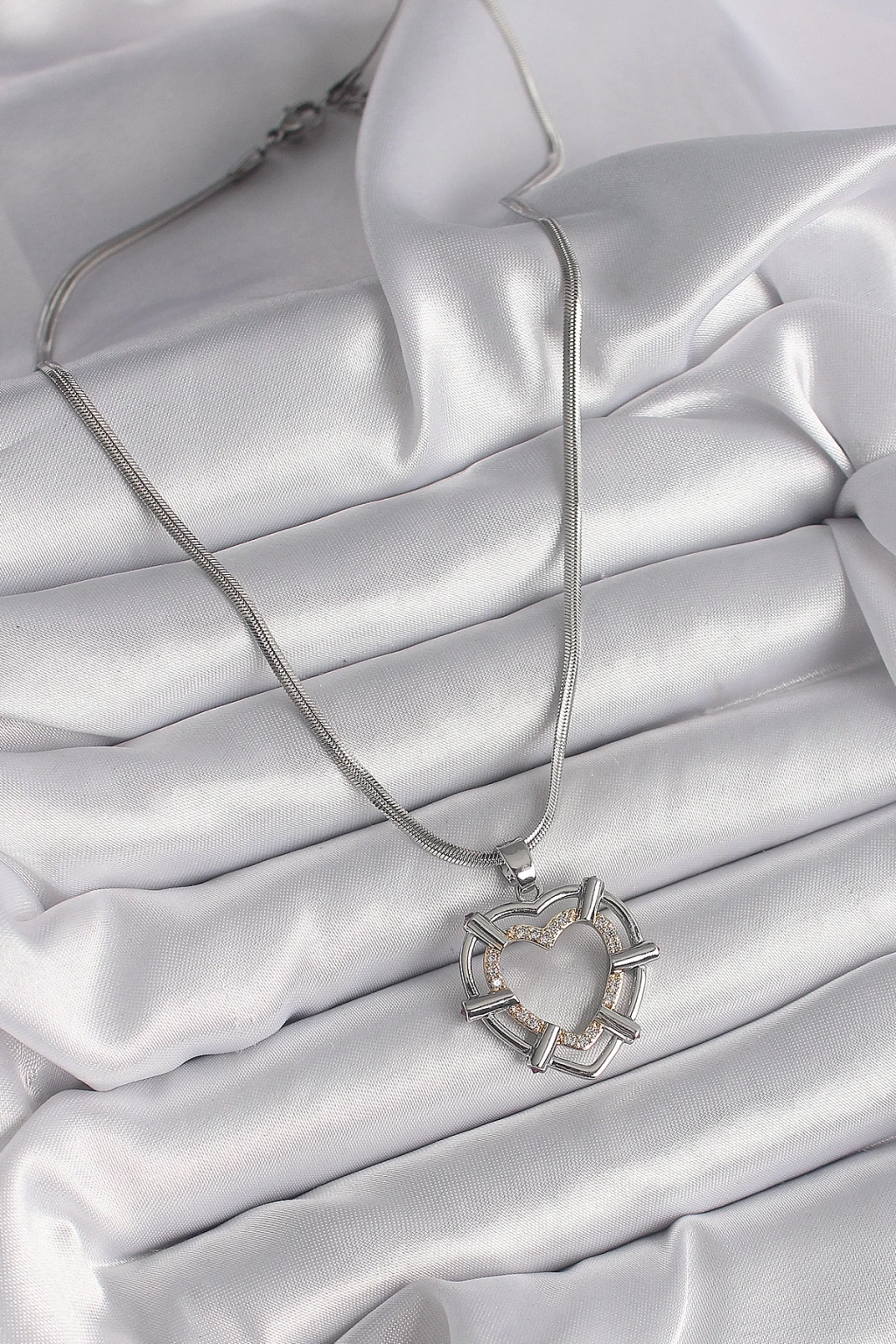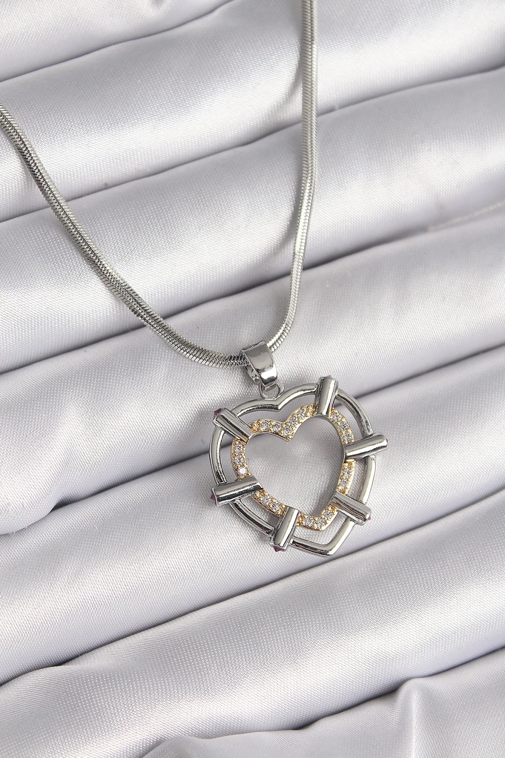 Dodes Dodes 316L Çelik Gümüş Renk İtalyan Zincir Mix Renk Zirkon Taş Detay Kalp Model Kadın Kolye TG27BKO9600