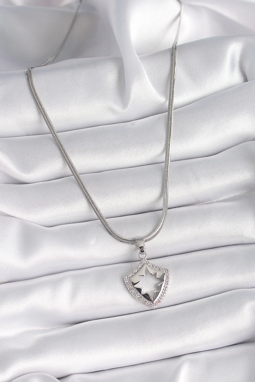 Dodes Dodes 316L Çelik Gümüş Renk İtalyan Zincir Zirkon Taşlı Kutup Yıldızı İşleme Model Kadın Kolye TG27BKO9535