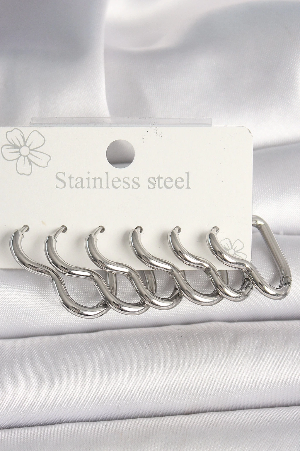 Dodes Dodes Pirinç Gümüş Renk 6'lı Kadın Küpe Seti TG27BKP11333