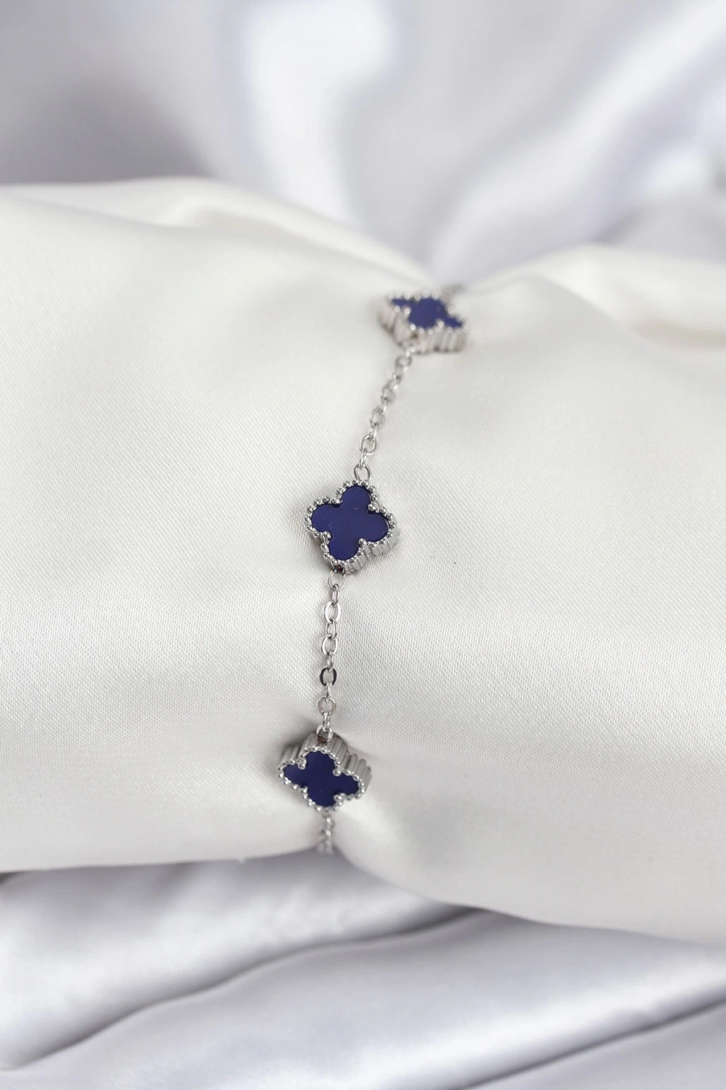 Dodes Dodes 316L Çelik Gümüş Renk Lacivert Baby Boy Yonca Kadın Bileklik TG27BB7952