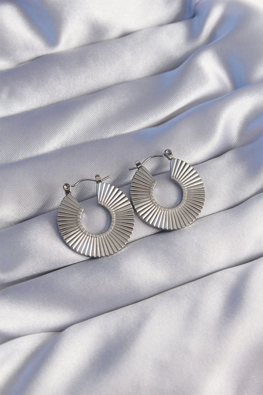 Dodes Dodes 316L Çelik Gümüş Renk Oval Çizgili Plaka Küpe TG27BKP9048