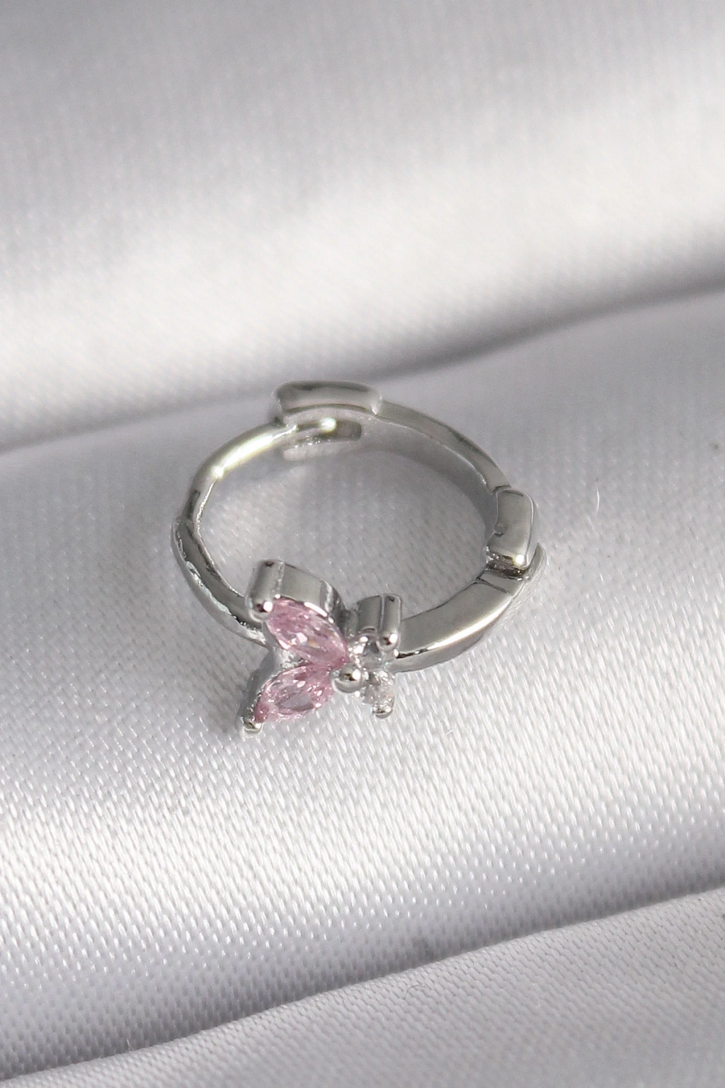 Dodes Dodes 316L Çelik Gümüş Renk Pembe Zirkon Taşlı Kelebek Model Tragus Piercing TG27PR1331