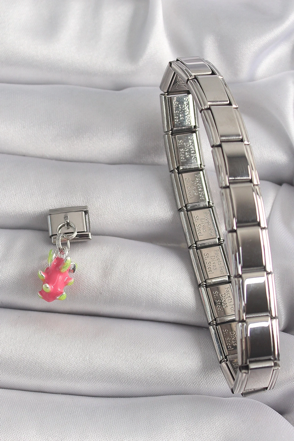 Dodes Dodes 316L Çelik Gümüş Renk Sallantı Ejder Meyvesi Model Nomination Charm TG27BC1175