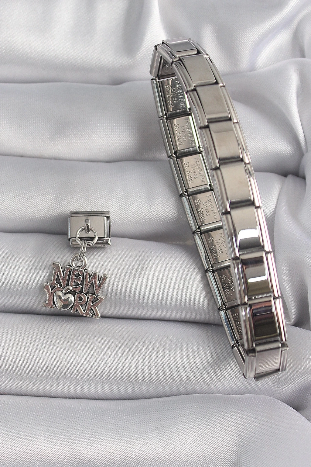 Dodes Dodes 316L Çelik Gümüş Renk Sallantı New York Yazı Model Nomination Charm TG27BC1120