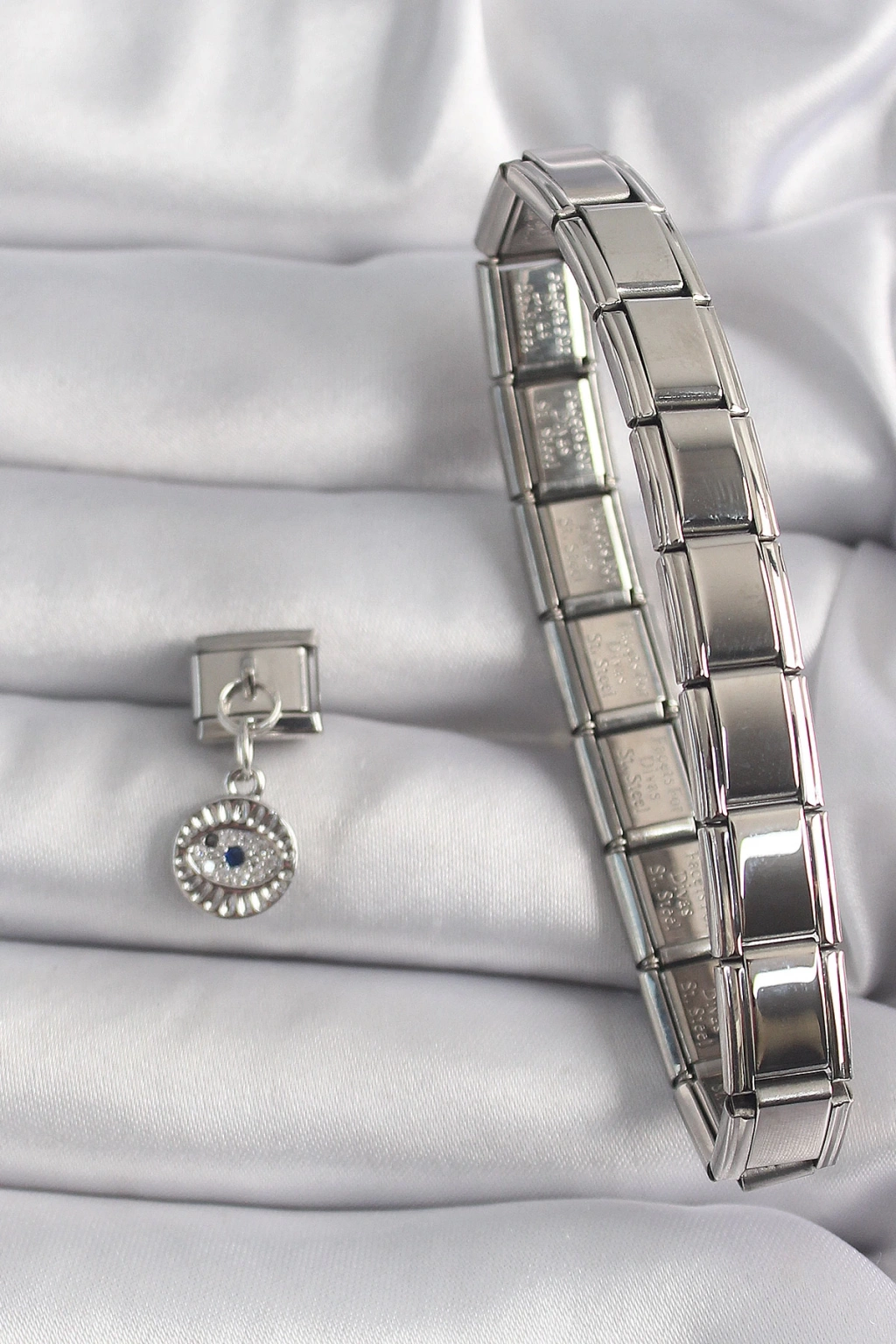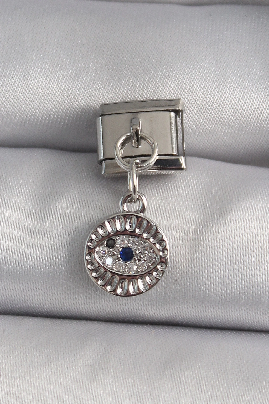 Dodes Dodes 316L Çelik Gümüş Renk Sallantı Zirkon Taşlı Göz Model Nomination Charm TG27BC1157