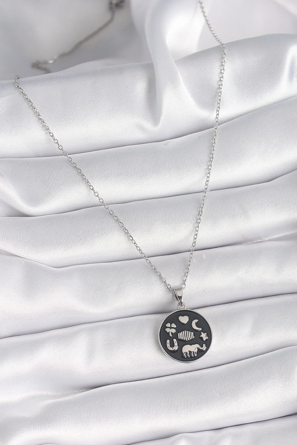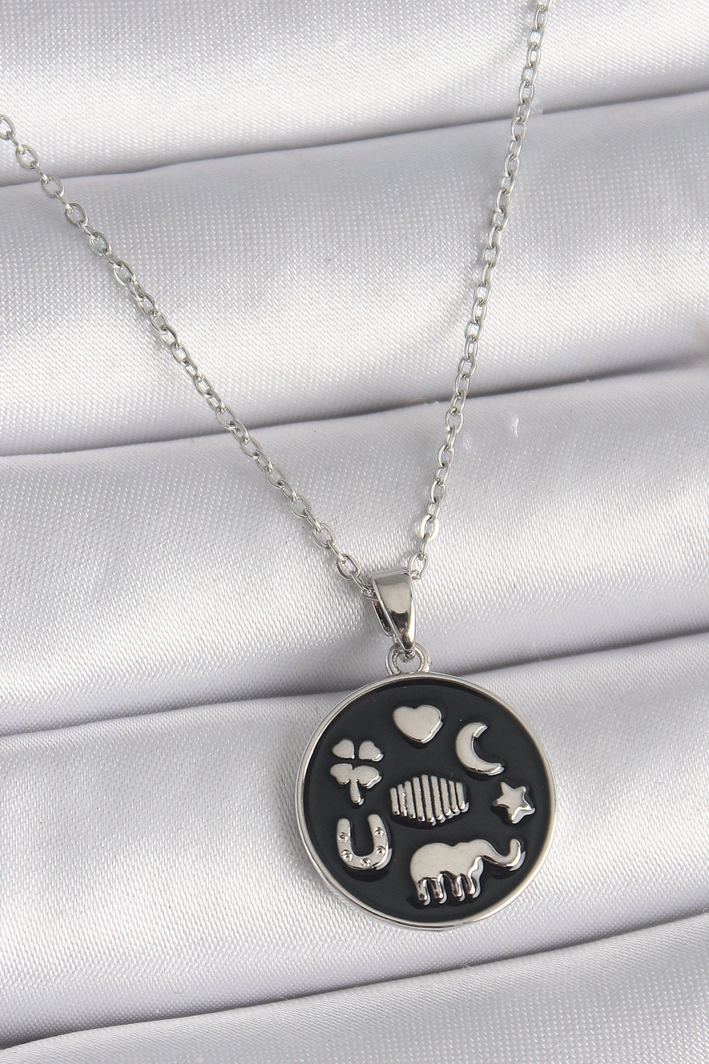 Dodes Dodes 316L Çelik Gümüş Renk Siyah Renk Şans Kolyesi TG27BKO9546