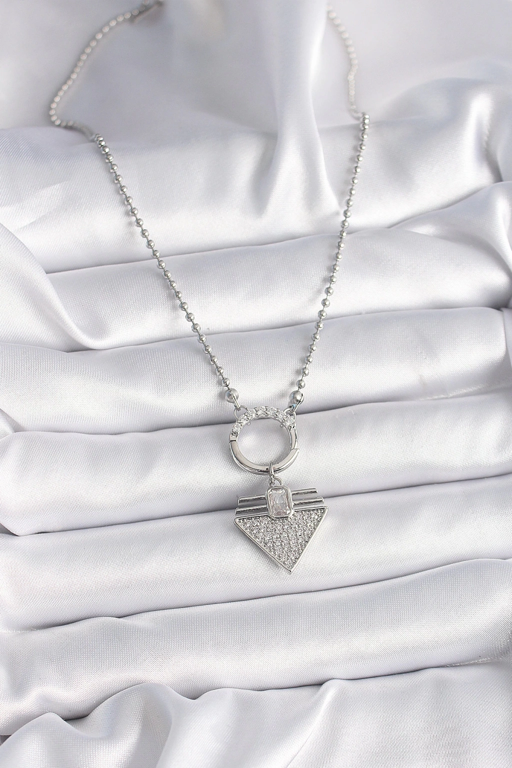 Dodes Dodes 316L Çelik Gümüş Renk Topçuk Zincir Zirkon Taşlı Üçgen Model Kadın Kolye TG27BKO9574