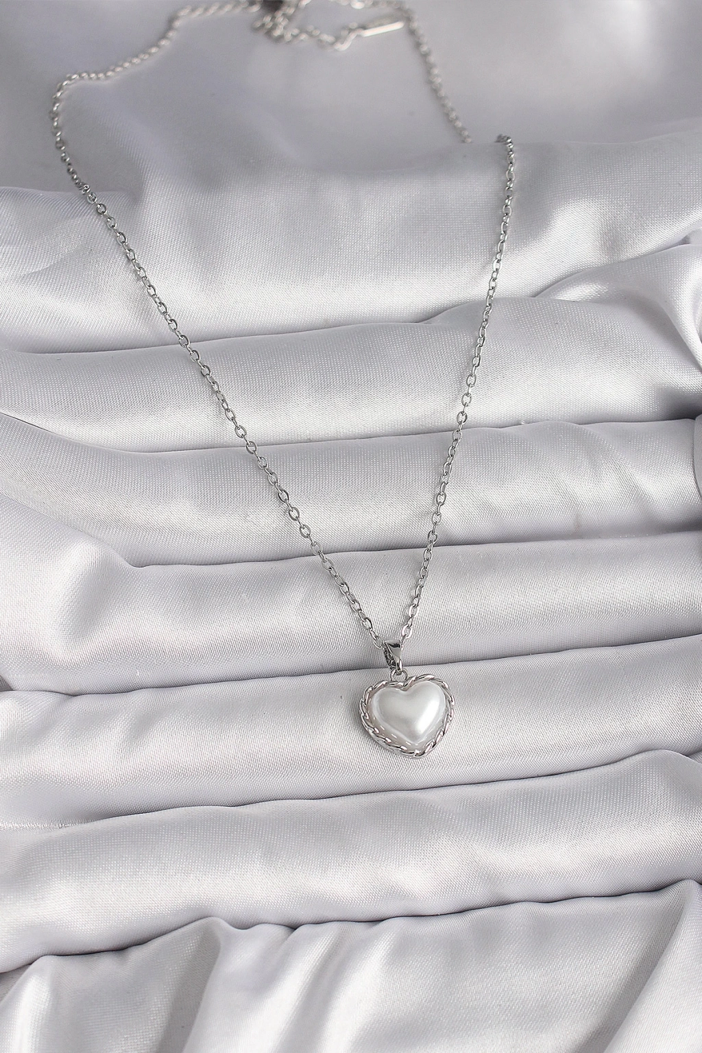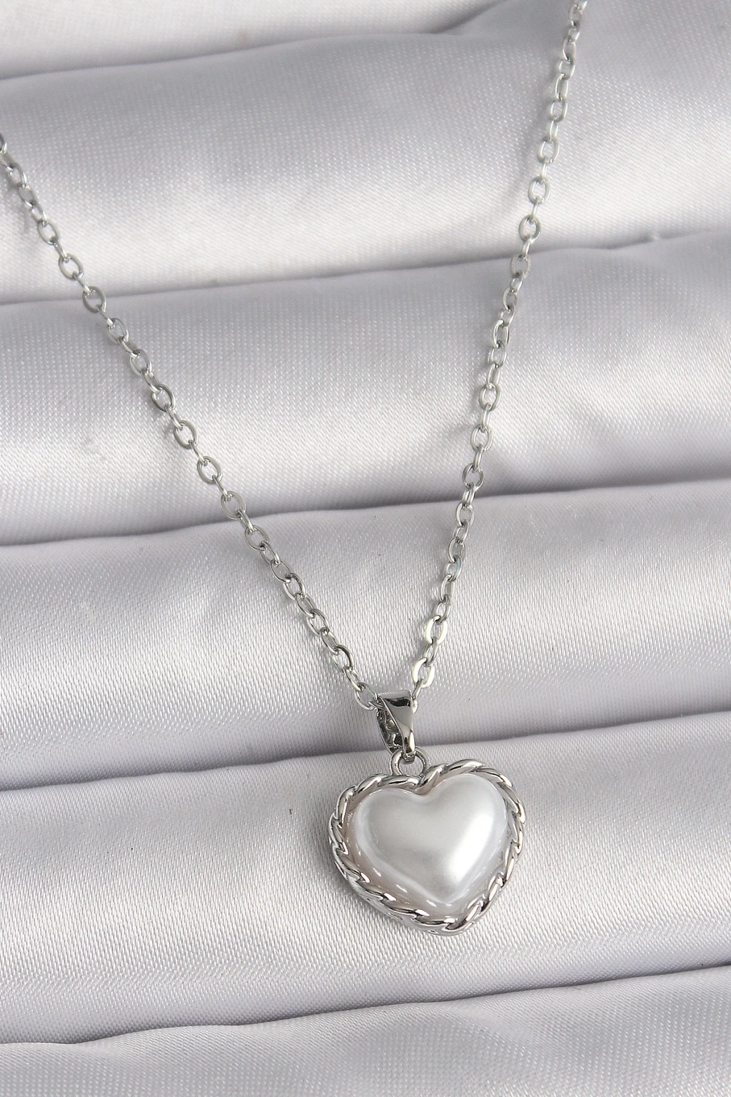 Dodes Dodes 316L Çelik Gümüş Renk Zincir 3D İnci Kalp Model Kadın Kolye TG27BKO9712