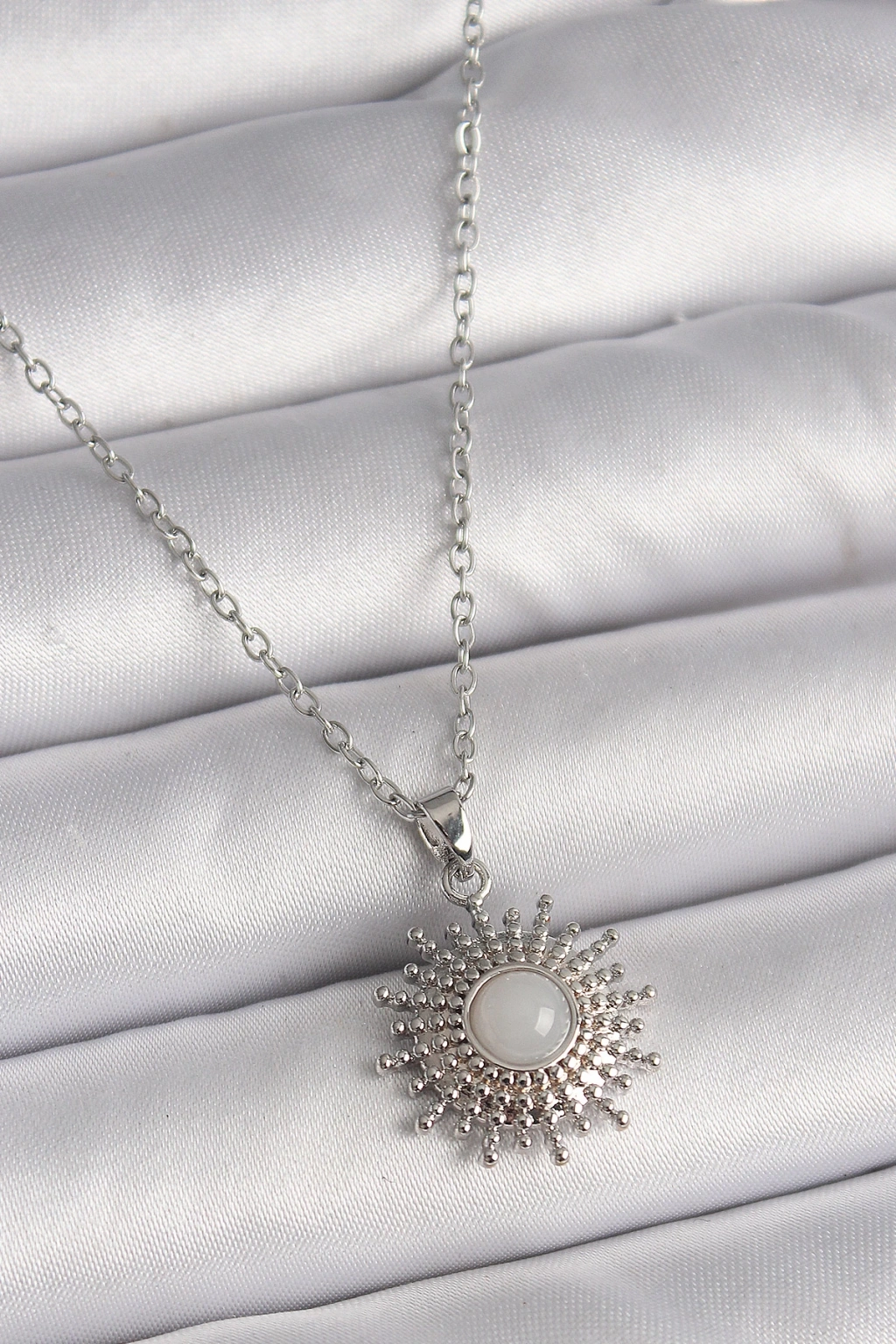 Dodes Dodes 316L Çelik Gümüş Renk Zincir Beyaz Mineli Güneş Model Kadın Kolye TG27BKO9719
