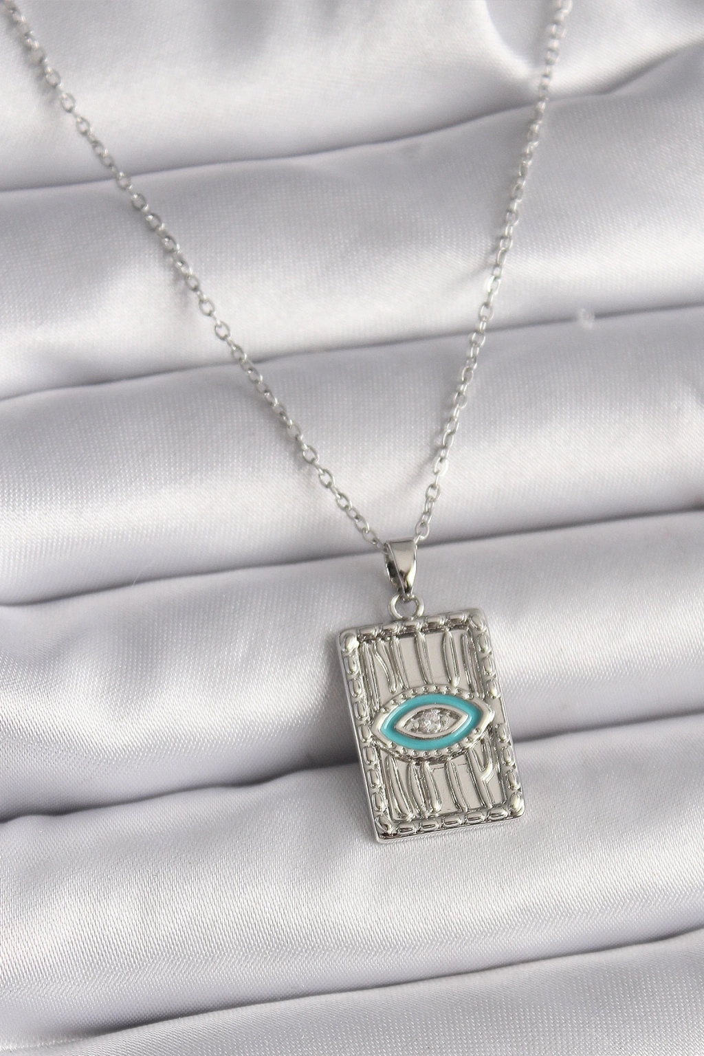 Dodes Dodes 316L Çelik Gümüş Renk Zincir Göz İşlemeli Madalyon Model Kadın Kolye TG27BKO9508