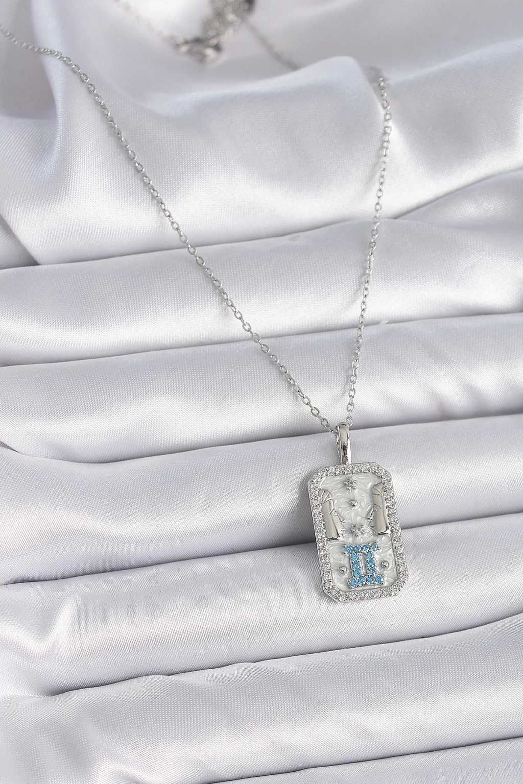 Dodes Dodes 316L Çelik Gümüş Renk Zincir İkizler Burcu Zirkon Taşlı Kadın Kolye TG27BKO9446