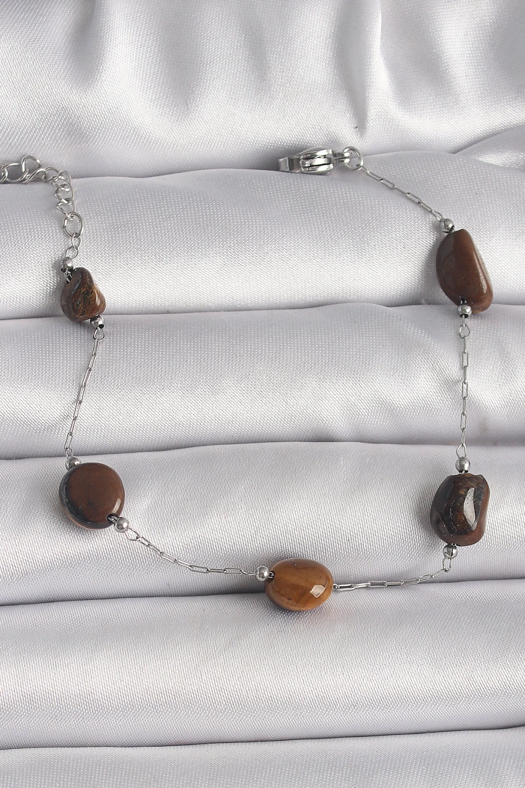 Dodes Dodes 316L Çelik Gümüş Renk Zincir Kahverengi Doğaltaş Model Kadın Bileklik TG27BB6596