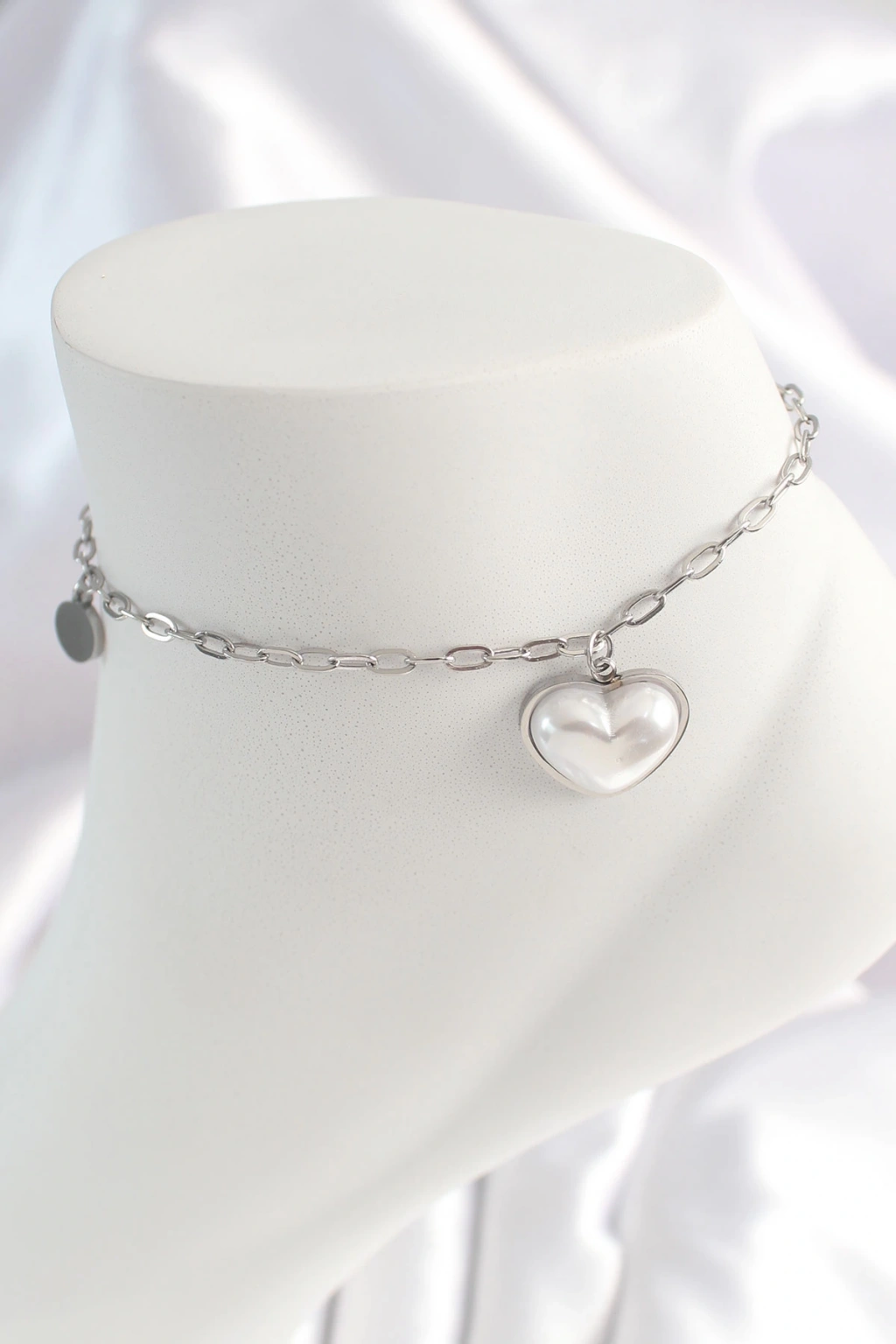 Dodes Dodes 316L Çelik Gümüş Renk Zincir Model 3D Kalp Beyaz Kalp Figür Kadın HalHal TG27HH1529