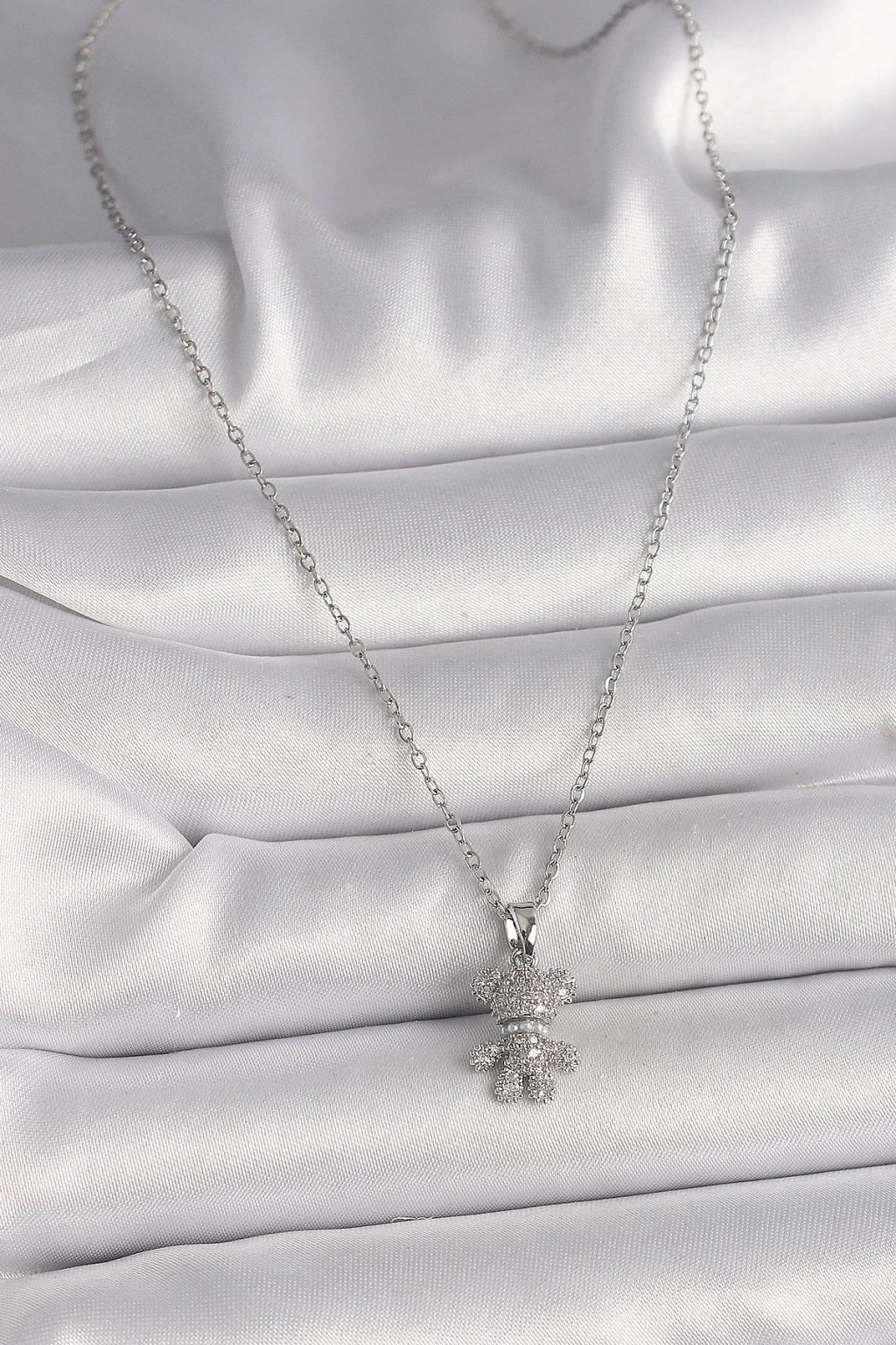 Dodes Dodes 316L Çelik Gümüş Renk Zincir Zirkon Taşlı Ayıcık Figür Kadın Kolye TG27BKO9811