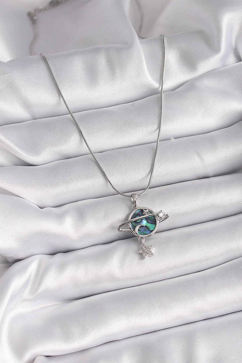 Dodes Dodes 316L Çelik Gümüş Renk Zincir Zirkon Taşlı Gezegen Model Kadın Kolye TG27BKO9478