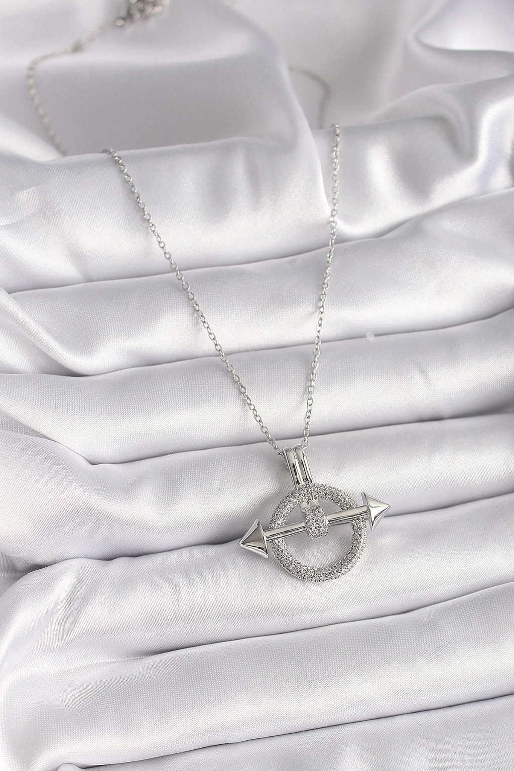 Dodes Dodes 316L Çelik Gümüş Renk Zincir Zirkon Taşlı Halka Model Kadın Kolye TG27BKO9506