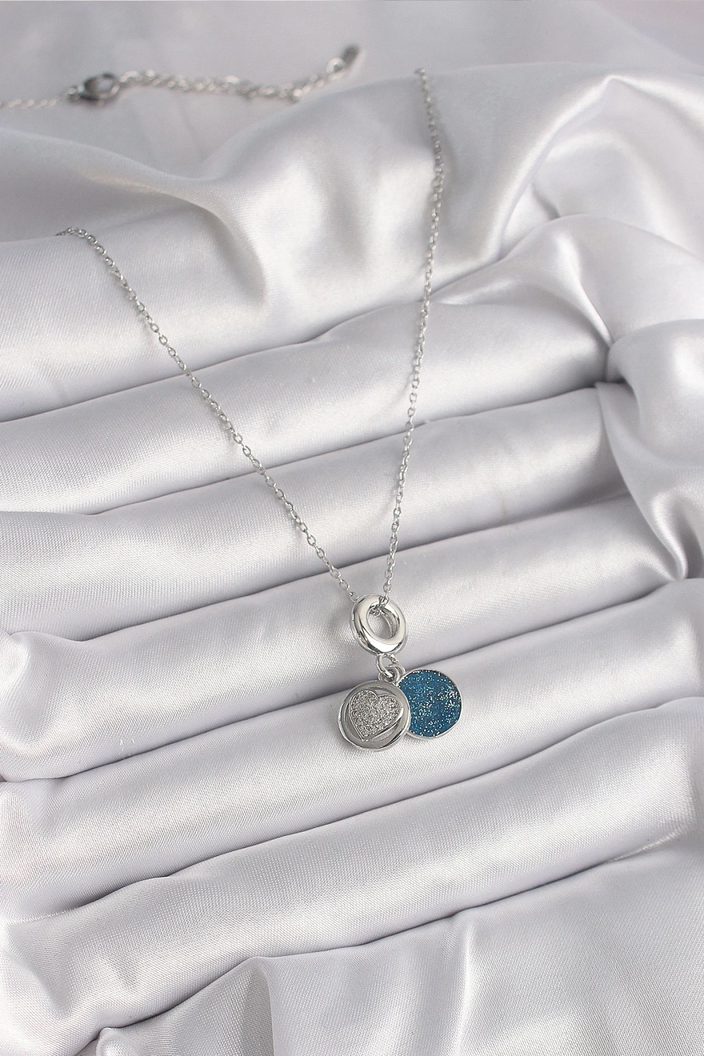 Dodes Dodes 316L Çelik Gümüş Renk Zincir Zirkon Taşlı İşleme Mavi Simli Kadın Kolye TG27BKO9641