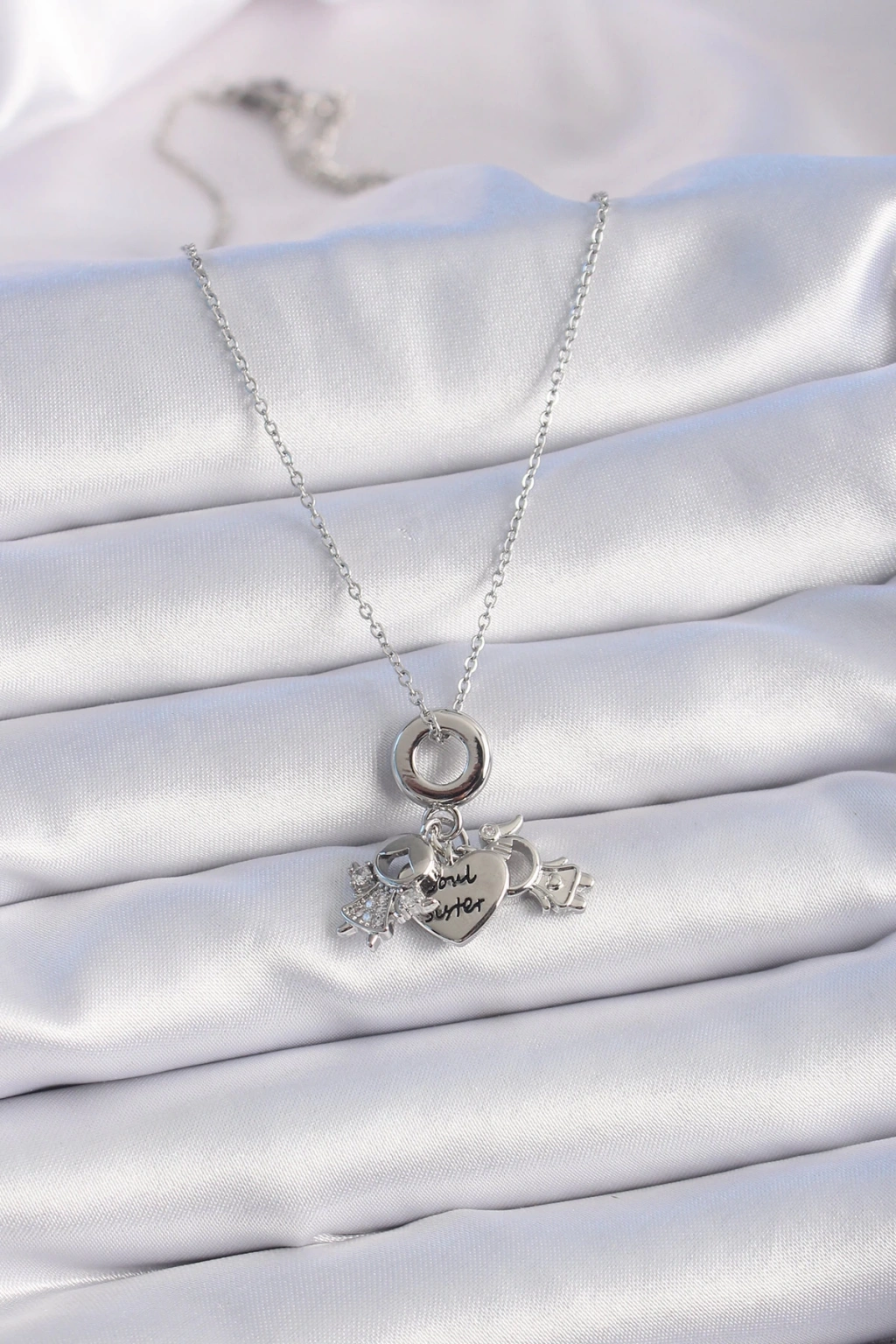 Dodes Dodes 316L Çelik Gümüş Renk Zirkon Taş Detay Çocuk Figür Charm Model Kadın Kolye TG27BKO9323