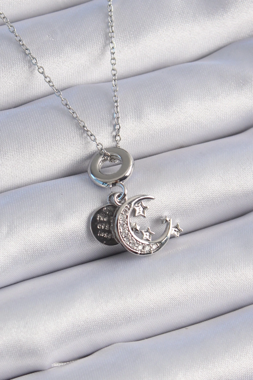 Dodes Dodes 316L Çelik Gümüş Renk Zirkon Taşlı Ay Yıldız Figür Charm Model Kadın Kolye TG27BKO9311
