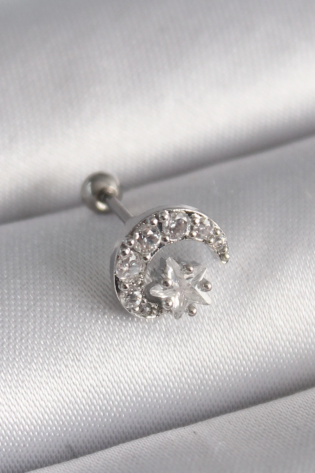 Dodes Dodes 316L Çelik Gümüş Renk Zirkon Taşlı Ay Yıldız Tragus Piercing TG27PR1257