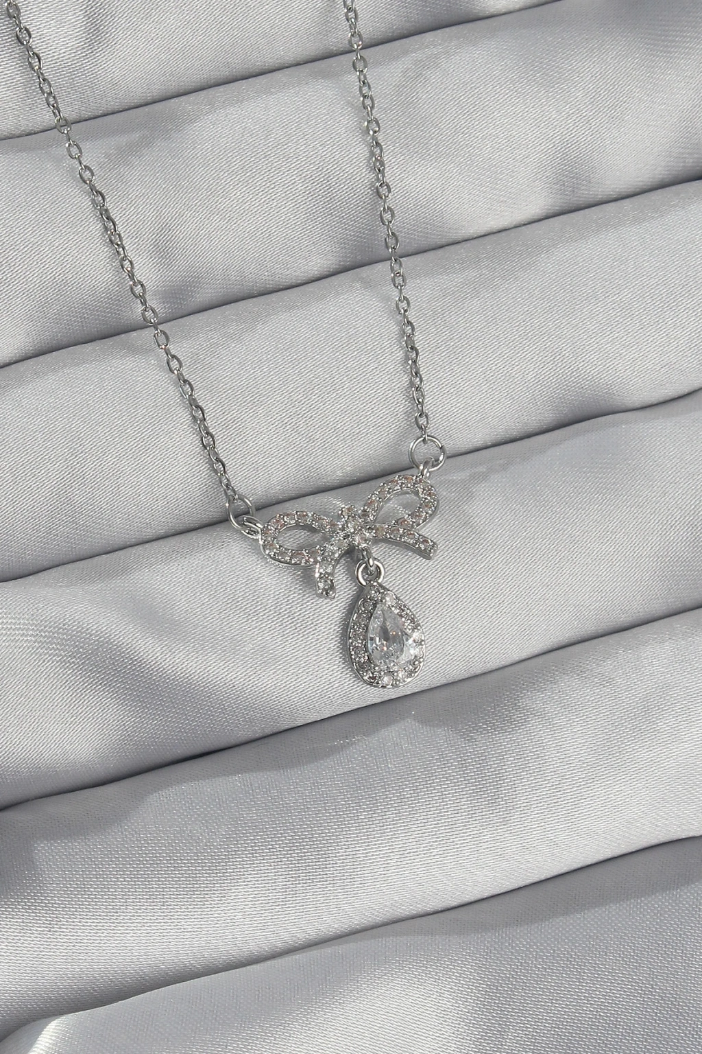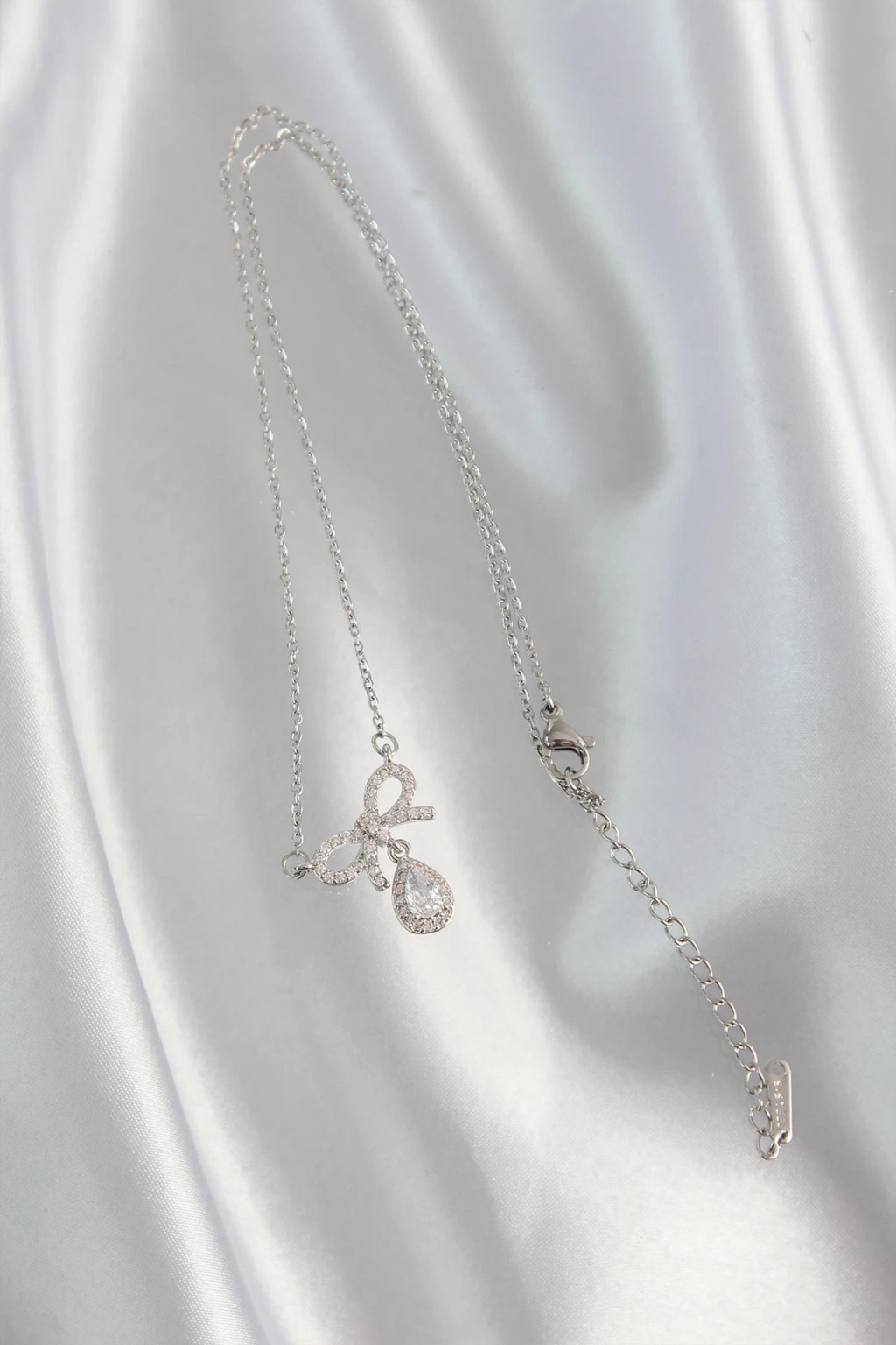 Dodes Dodes 316L Çelik Gümüş Renk Zirkon Taşlı Fiyonk Detay Damla Kolye TG27BKO8922