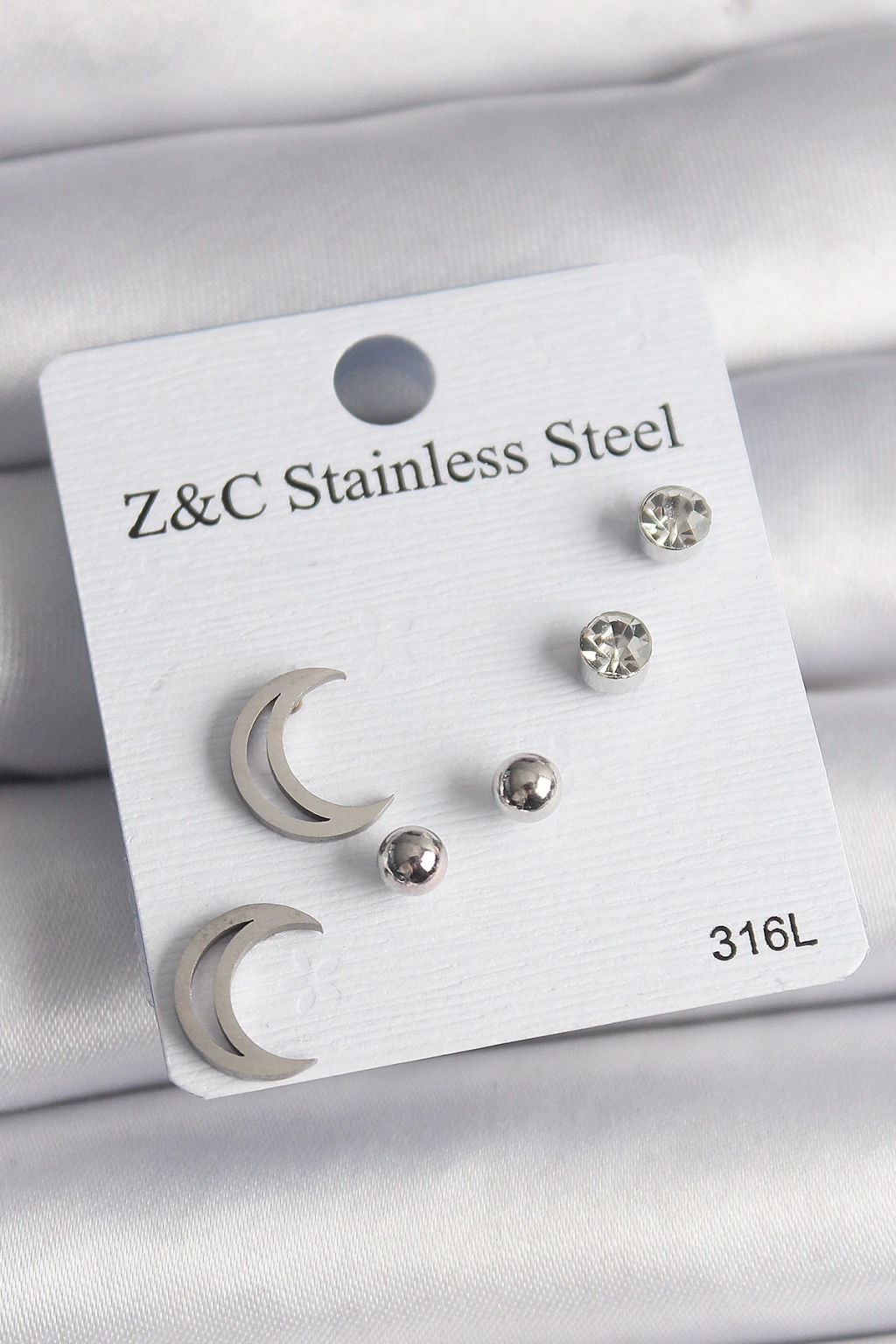 Dodes Dodes 316L Çelik Gümüş Renk Zirkon Taşlı Hilal Model Kadın Küpe Seti TG27BKP10010