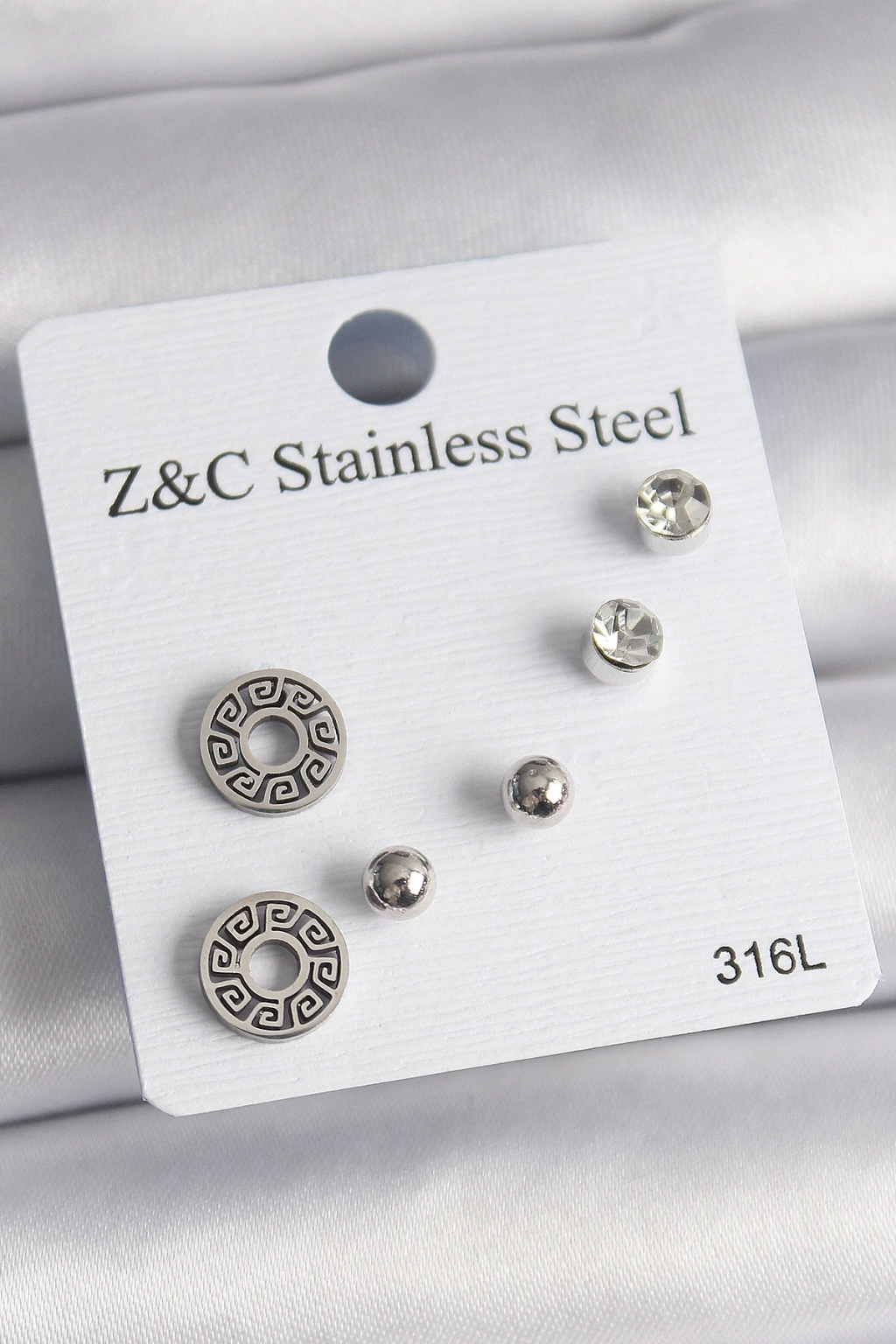 Dodes Dodes 316L Çelik Gümüş Renk Zirkon Taşlı Labirent Model Kadın Küpe Seti TG27BKP10012