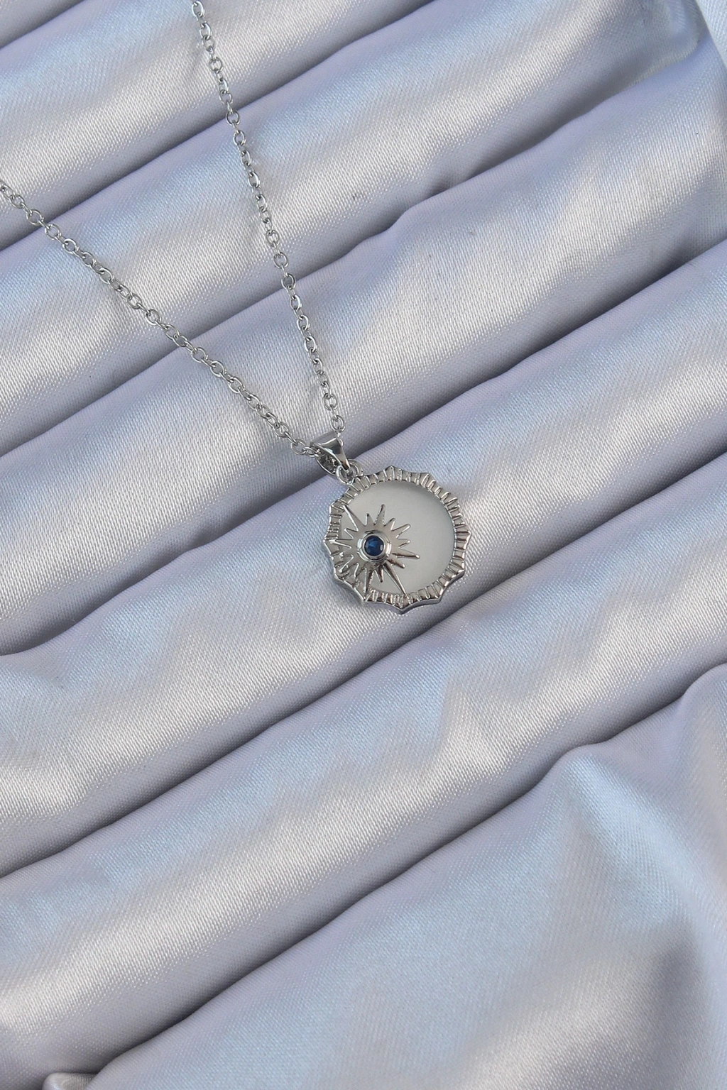 Dodes Dodes 316L Çelik Gümüş Renk Zirkon Taşlı Mineli Kutup Yıldızı Kolye TG27BKO9148