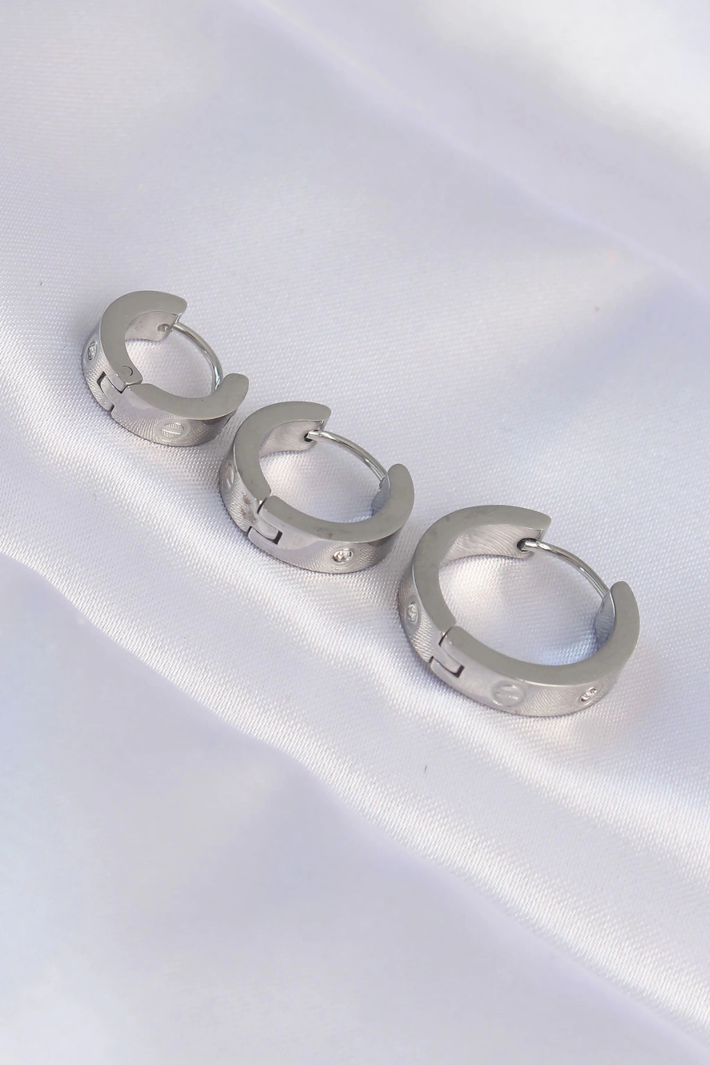 Dodes Dodes 316L Çelik Gümüş Renk Zirkon Taşlı Model 3lü Halka Küpe TG27BKP9008