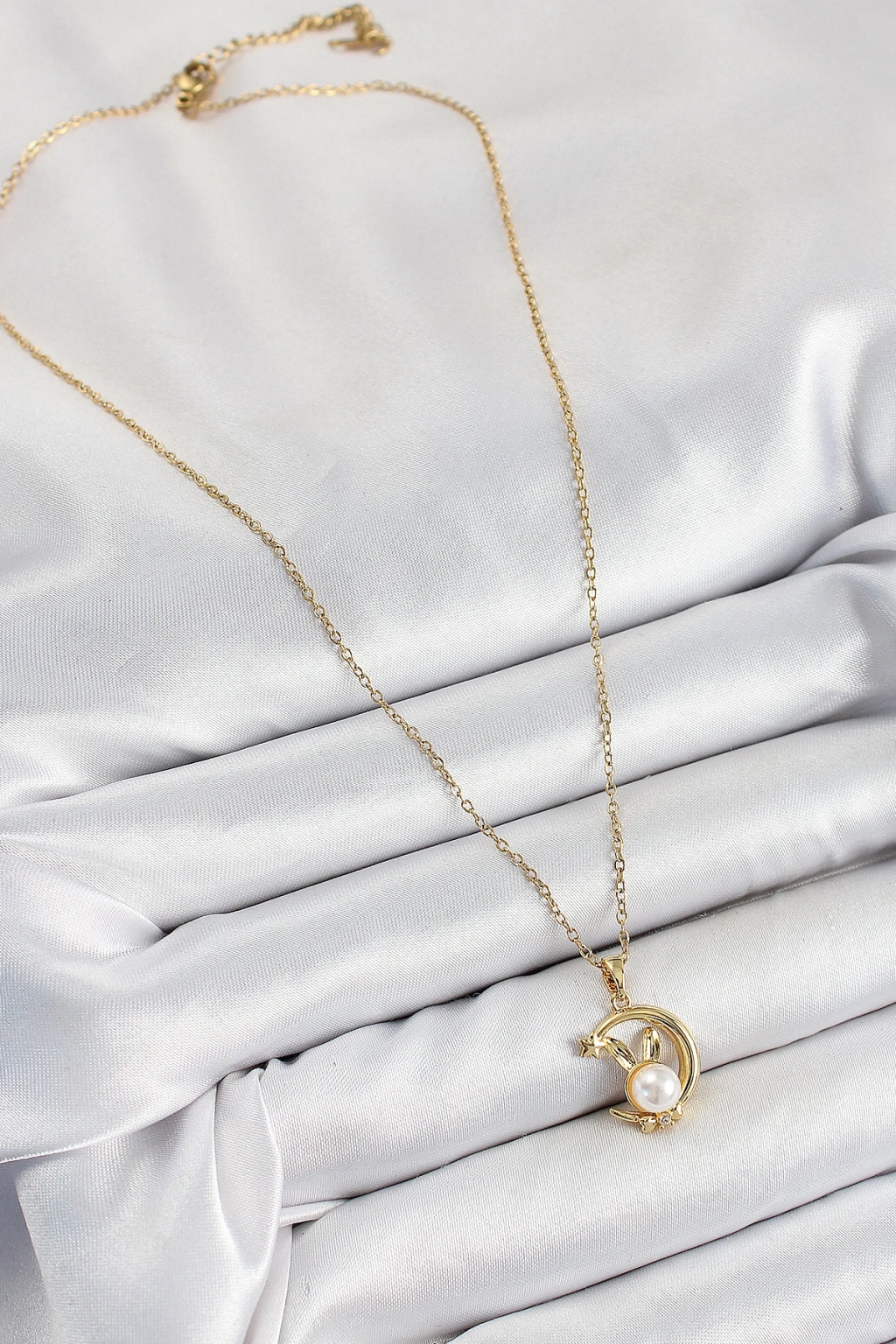 Dodes Dodes 316L Çelik İnci Detaylı Hilal Tavşan Model Gold Renk Kadın Kolye TG27BKO10347